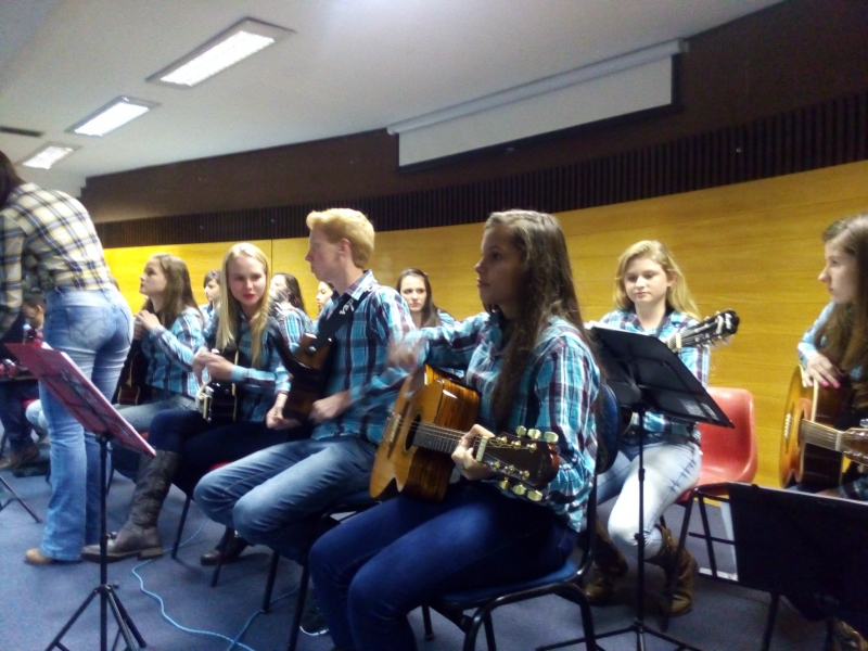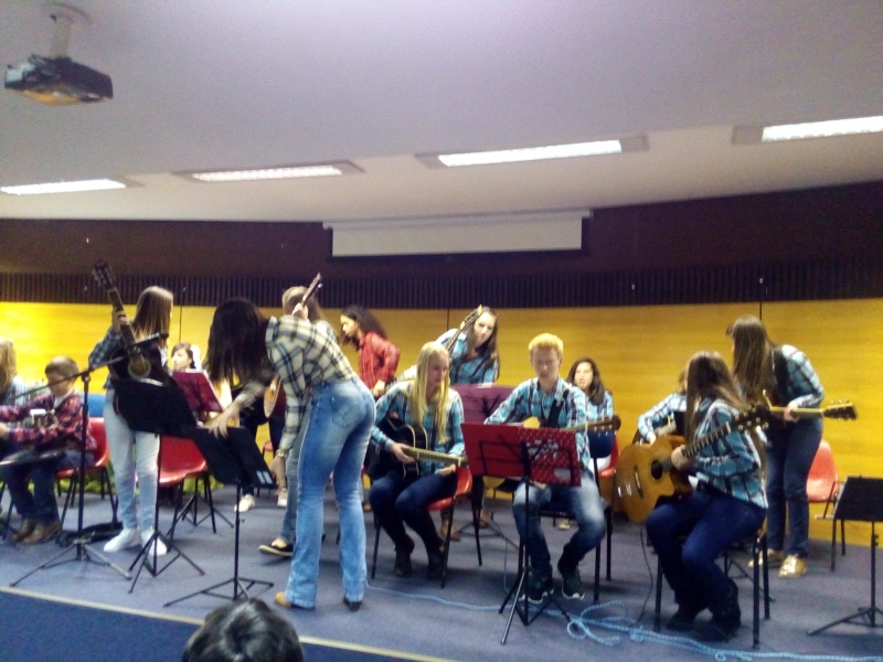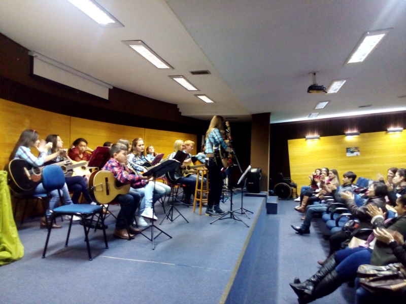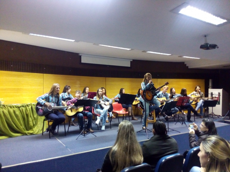 presentearam com a mais genuína música de raíz sob o comando da professora e violeira Tabatha Hinkel.