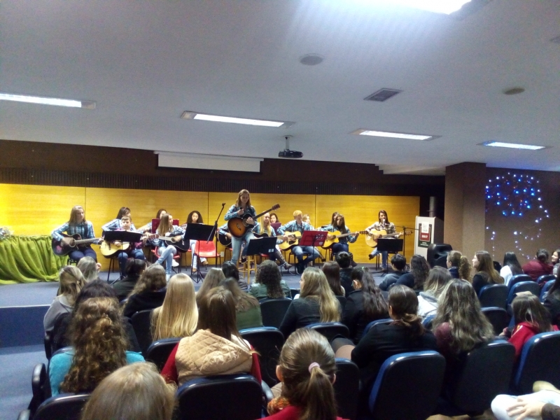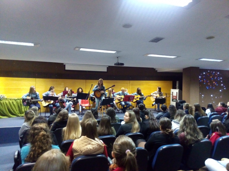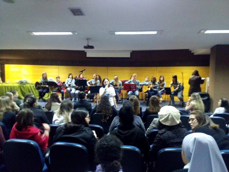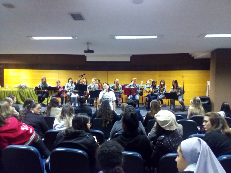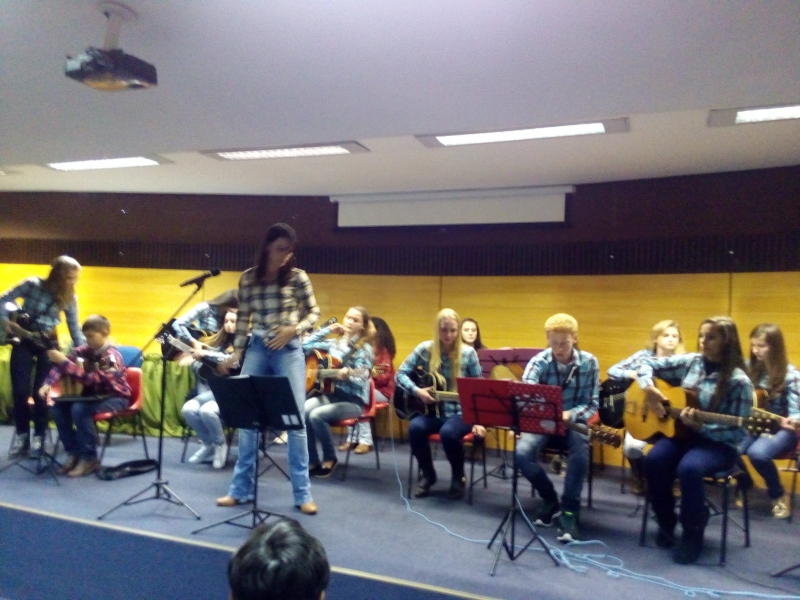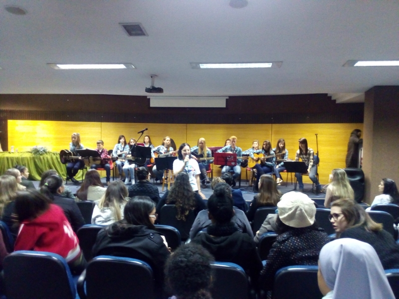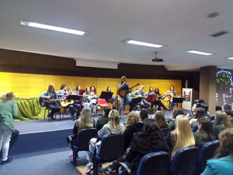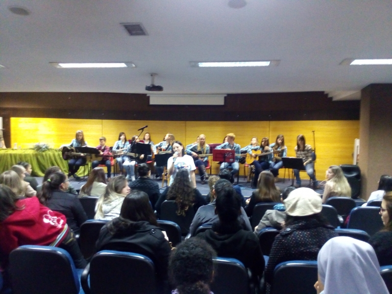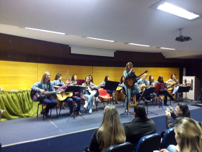 8º período, juntamente com a Professora Karianny Gerotto, interpretaram a Música "Trem Bala"