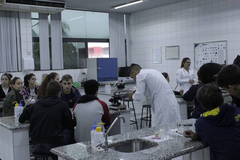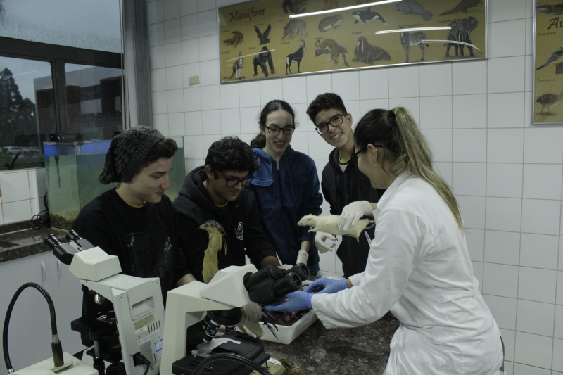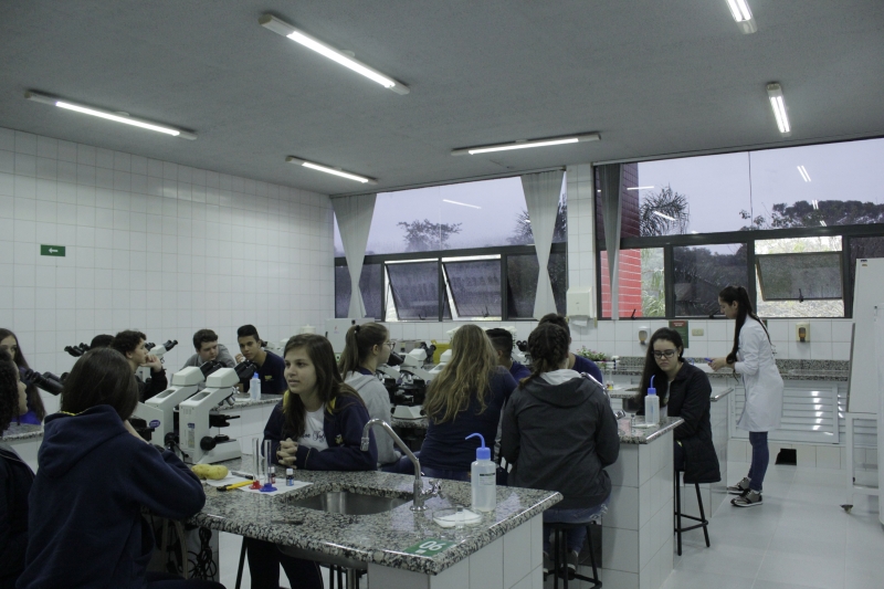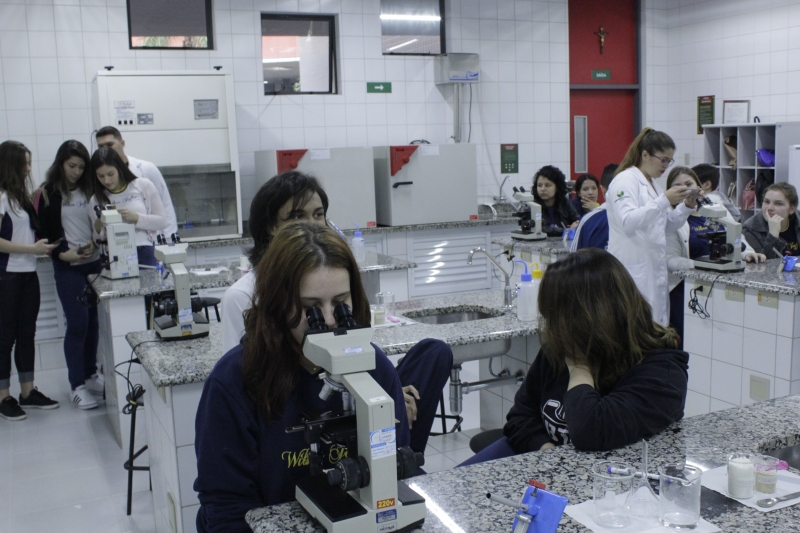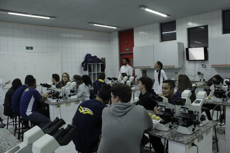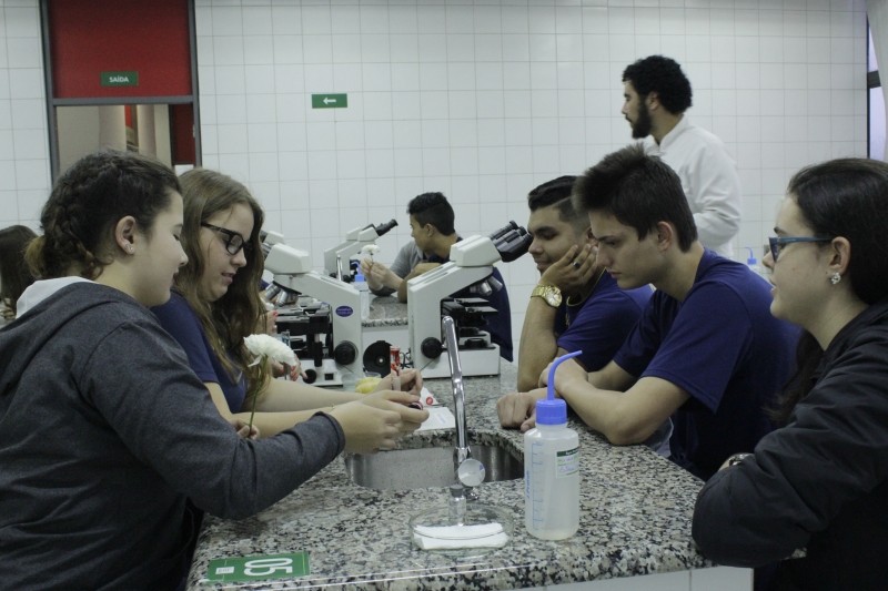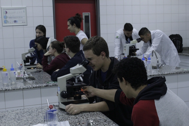 Na terça-feira (06), os alunos do Ensino Médio do Colégio Estadual Wilson Joffre visitaram os laboratórios de Anatomia, Botânica, Microbiologia e Zoologia do Centro Universitário FAG. O grupo de cerca de 60 alunos realizou atividades práticas com o auxílio dos acadêmicos de Ciências Biológicas do 5º período. O objetivo da visita é estimular a curiosidade e o interesse dos alunos pelos estudos e profissões.