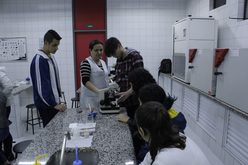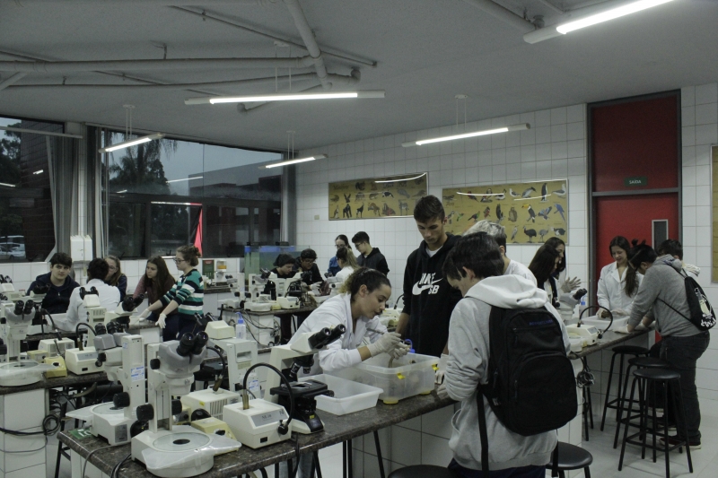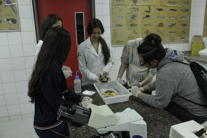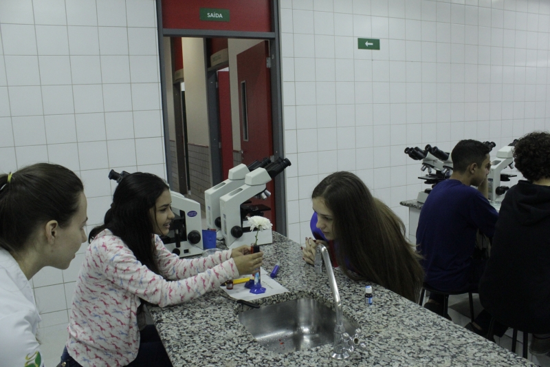 Na visita os alunos desenvolveram práticas com o curso de Ciências Biológicas