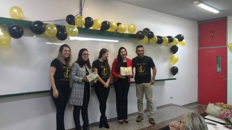 Professores, que participaram de diferentes etapas de formação dos alunos também marcaram presença. De acordo com a líder da turma, Sabrina Menussi, foi uma oportunidade para agradecer a todos que contribuíram com os conhecimentos adquiridos nesses 5 anos. "Foi bem emocionante. Choramos muito, matamos saudades de alguns professores. A surpresa dos familiares foi incrível. O que fica é um sentimento de gratidão. Cada professor deixou um pouquinho de si em nós. Agradeço muito ao professor Josnei e à Coordenação do curso por tudo", expressa. "Foi uma noite linda, liderada pelo amigo e colega de trabalho Josnei, cheia de lembranças e incentivos à luta na caminhada desta linda carreira, nossa amada carreira jurídica. Momentos assim nos proporcionam perceber o quanto contribuímos para formação dos alunos e também podemos ver o quanto eles nos marcaram e nós os marcamos. Foi mais que uma troca de conhecimento científico, foi o estabelecimento de uma relação humana", encerra a Coordenadora do curso, Viviana Bianconi.