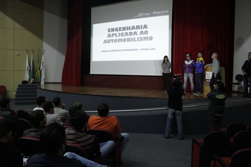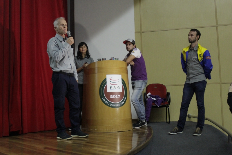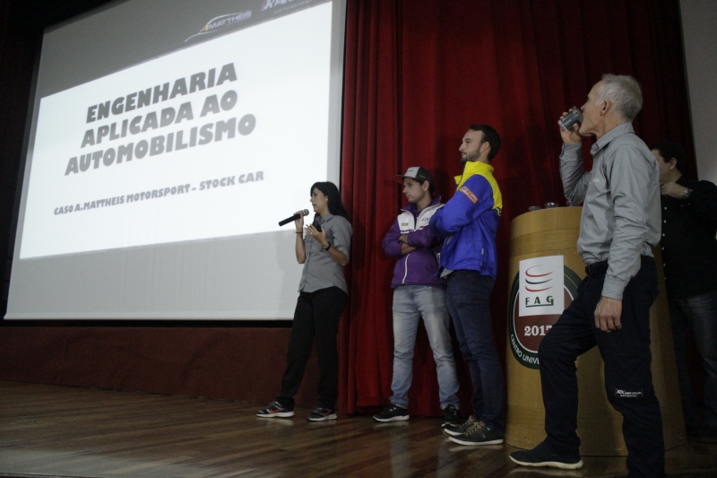 Na noite de ontem (08), acadêmicos do curso de Engenharia Mecânica do Centro Universitário FAG participaram da palestra com a equipe A.Mattheis, que comanda o time Ipiranga da Stock Car. O evento foi realizado no Anfiteatro da Reitoria e recebeu o chefe, Andreas Mattheis, e seus engenheiros para falar, que segundo ele, da segunda paixão dos brasileiros: o automobilismo. "Depois do futebol, o automobilismo é sim a nossa segunda paixão. O objetivo desse encontro é falar das nossas experiências e de como os profissionais se encaixam nesse mercado. É uma questão de dever compartilhar isso com os acadêmicos, por isso trouxemos três jovens engenheiros que também deram seus depoimentos", relata.