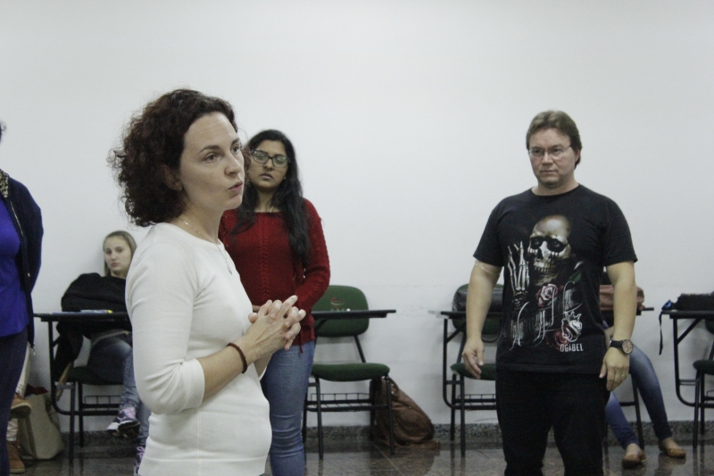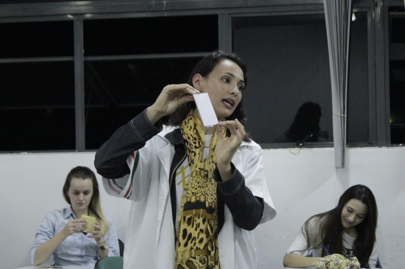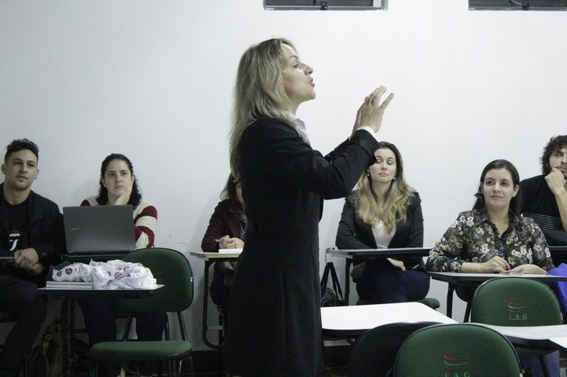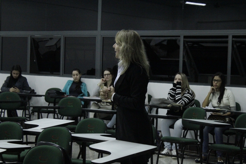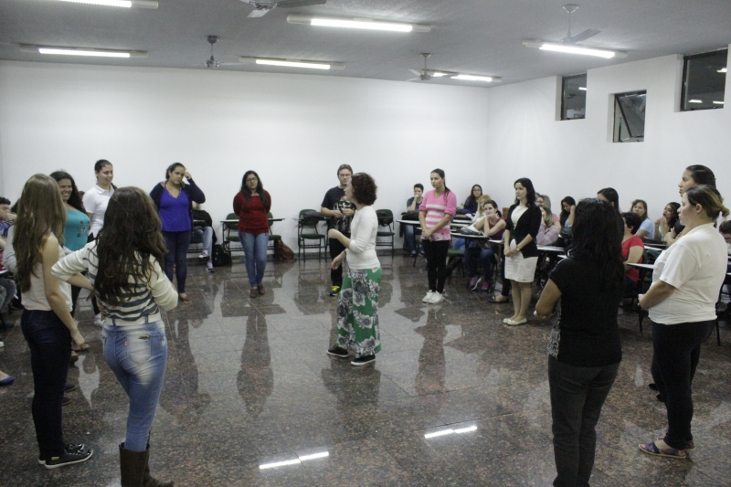 Lysiane Baldo aplicou a oficina: Práticas Teatrais como Processo Pedagógicos, usando a metodologia dos jogos teatrais. "Fiquei muito feliz com o convite, já estive outras vezes na FAG para falar do teatro para os alunos de Pedagogia e Letras. Falei como o teatro pode servir de ferramenta para desenvolver outras formas de ensino. Para fugir um pouco do tradicional e buscar uma concepção diferenciada, para proporcionar um contato maior entre professor e o aluno", relata.