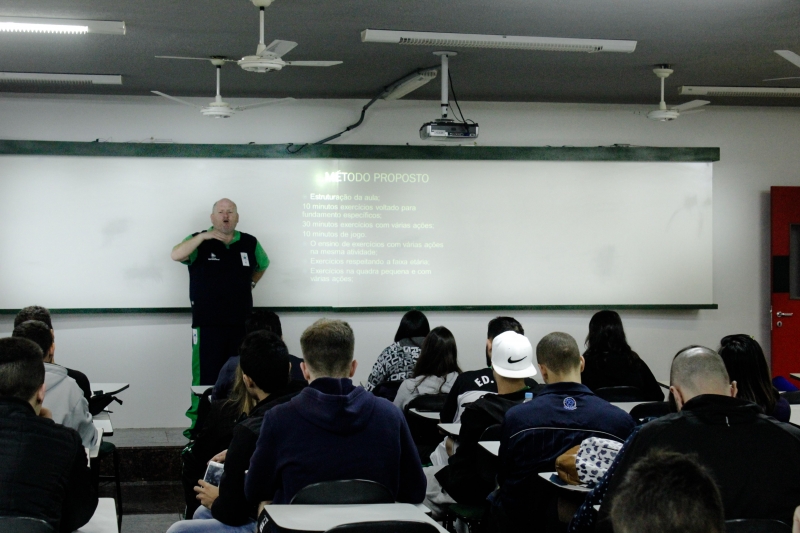 Outro minicurso foi sobre Iniciação Desportiva, com o professor Dorival Sesso Junior. "Nós trabalhamos quais são os métodos usados, qual é a maneira de você montar a estruturação de escolinhas esportivas, como trabalhar e qual é a diferença entre as crianças. É uma área muito carente, poucas pessoas trabalham com eficiência dentro dela. As modalidades são o principio de tudo. Hoje o atleta de alto rendimento vai começar com essa iniciação desportiva", informa o palestrante.
