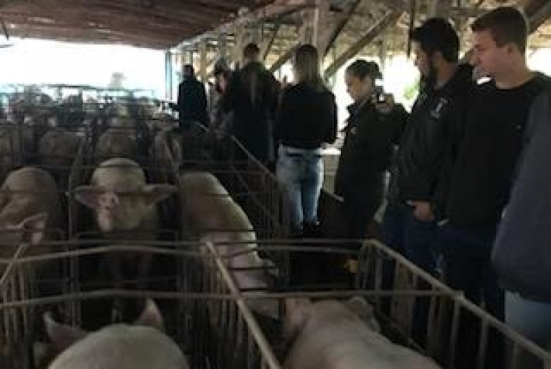Na disciplina de Produção de Suínos, os acadêmicos de Medicina Veterinária do Centro Universitário FAG foram a campo. Sob a supervisão da professora Meiriele Piassa, os alunos conheceram a prática de uma UPL (Unidade Produtora de Leitões), na propriedade localizada em Campo Bonito de uma das alunas do curso, Paola Ficagna, que junto da família trabalha no segmento. Foram três visitas. "Sem a ajuda desses produtores, que trabalham dia e noite no ramo, os alunos não teriam a possibilidade de conhecer o dia a dia de um sistema de produção de suínos, pois, mais importante que ter o conhecimento teórico da sala de aula, é conhecer e colocar em prática todo o aprendizado obtido durante o semestre", pontua a professora.