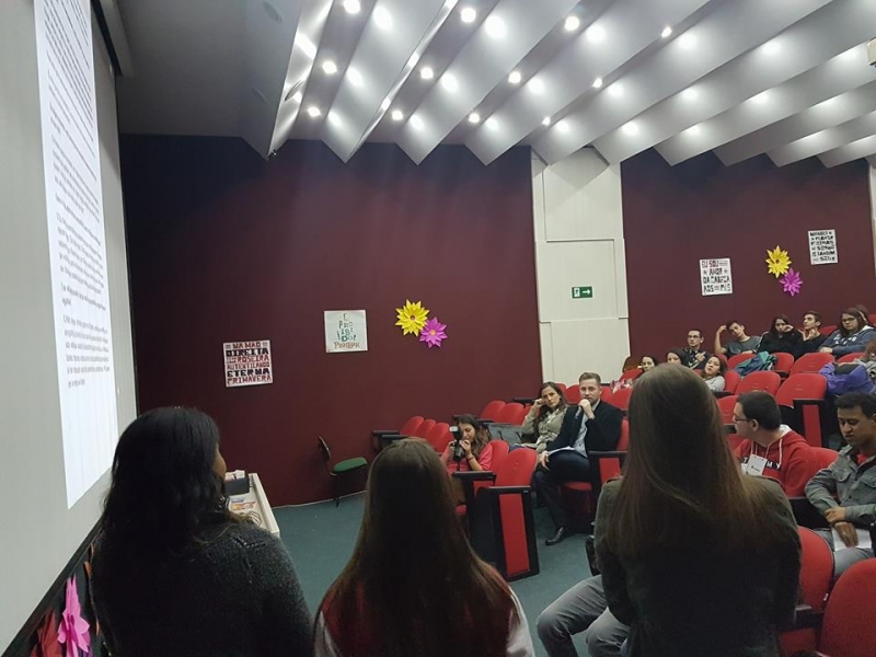 A acadêmica, Emilly Lazarotto, fala da oportunidade em participar do seminário. "É uma experiência bem diferente, principalmente pra gente que está no primeiro período e apresentando dois trabalhos. Deu um pouco de medo, mas foi legal", relata.