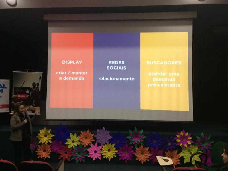 Já no Auditório do Bloco II, acadêmicos de Publicidade e Propaganda, participaram da palestra: Marketing e Conteúdo com a palestrante, Camila Leite. "Falei da diferença entre as áreas de Jornalismo e Marketing, o que a marca diz e o que o jornalismo diz sem perder a credibilidade, e sobre a interação muito forte que existe entre publicitários, jornalistas, designers e fotógrafos", explica. Após a palestra, os alunos apresentaram seus trabalhos da disciplina de Fundamentos do Marketing, com supervisão da professora Angélica Fonseca.
