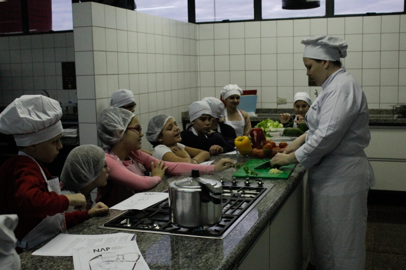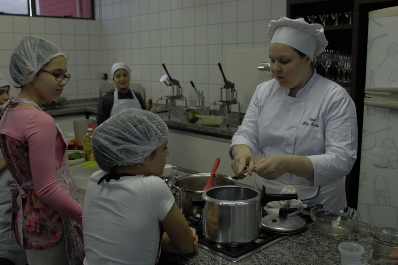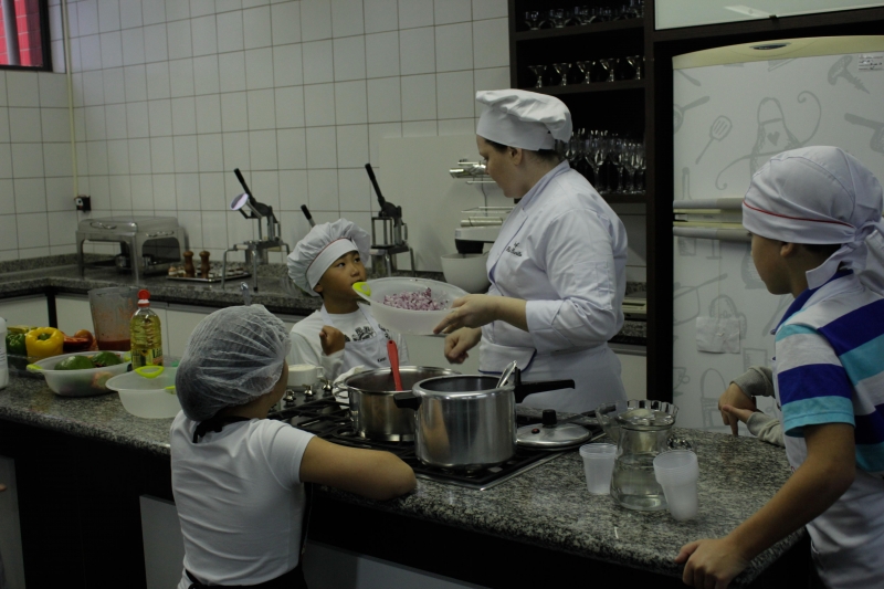 Fabiana Barão, professora de Gastronomia, explica a interação dos alunos com o curso. "Os pratos propostos no curso são coisas fáceis de fazer, e que não se usa muito fogo, a gente evita bastante esse uso. As crianças adoram cozinhar, elas ficam toda hora perguntando quando vão colocar a mão na massa e fazer alguma coisa, eles gostam de estar no controle elaborando os pratos e estarem em contato com a comida. Na pizza, por exemplo, eles que produziram os recheios, massas e tudo mais. Eles já fizeram o último prato em casa e os pais mesmos comentaram com a gente que foi um retorno positivo", expressa.