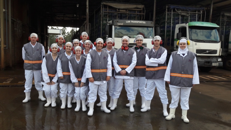 A empresa LAR abate 340.000 aves por dia e durante todo o abate verificou-se todas as linhas de inspeção, verificação de aves que seriam descartadas, cortes especiais realizados, evisceração, embalagem e acondicionamento das mesmas. No final da visita os alunos degustaram alguns produtos produzidos pela indústria.