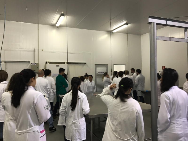 A visita teve como intuito ampliar o conhecimento na disciplina de Inspeção de Produtos de Origem Animal, ministrada pela Professora Me. Lais D. Weber, buscando fazer com que os alunos vivenciassem a prática de produção de produtos de origem animal, formas exigidas de instalação, mecanismos do processo de produção bem como as boas práticas de fabricação (BPF).
