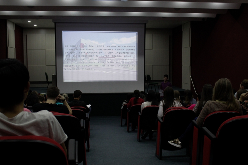 O debate foi realizado no Auditório do Bloco I. "Essa prática foi bem diferente pra mim e para o meu grupo, pois nunca tínhamos vivenciado um projeto assim. Sempre víamos ali no papel, mas nunca como as pessoas sentem passando pelo espaço interno de uma obra. Então foi um estudo obra X usuário que nos gratificou", descreve a acadêmica da turma do Integral, Amanda Prediger.