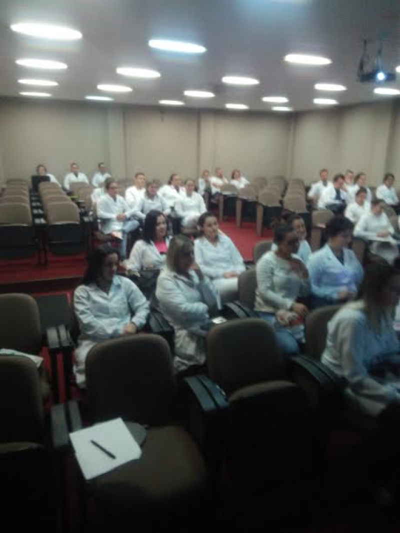 Os alunos do 7º período de Enfermagem do Centro Universitário FAG realizaram atividades de estágios no Hospital de Ensino São Lucas. Neste fim de semestre, eles apresentaram a sistematização da Assistência de Enfermagem (SAE), desenvolvida durante as atividades. Os acadêmicos foram orientados pelas docentes de estágios, Rita de Cassia Martins Carneiro e Neusa Gomes Tolotti. A SAE é uma habilidade técnico-cientifica e parte do cotidiano do enfermeiro. No Estágio, a proposta foi que os acadêmicos desenvolvessem as habilidades assistenciais e gerenciais da assistência.