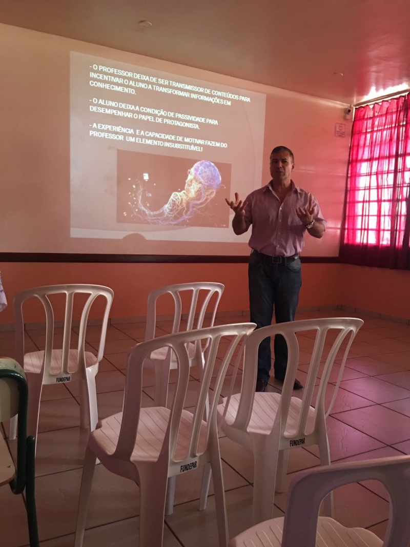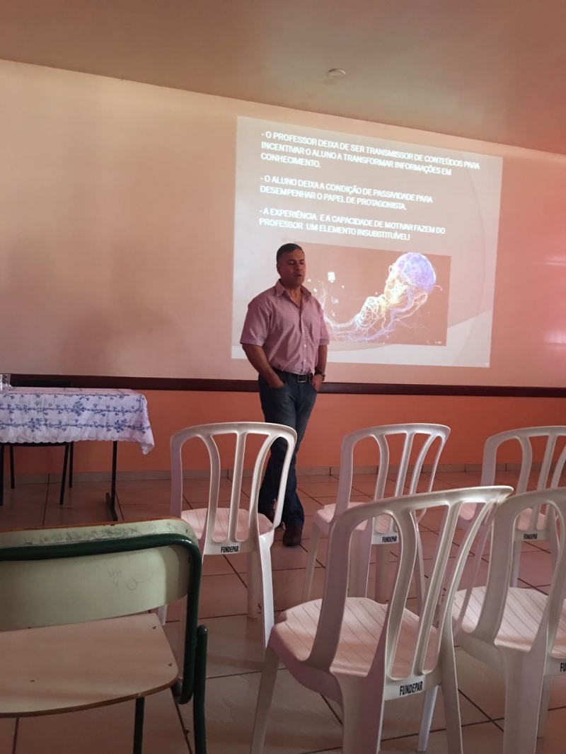 O Vice-reitor do Centro Universitário FAG, Sérgio De Angelis, esteve na semana passada no Colégio Estadual José Angelo Baggio Orso. Ele foi convidado para participar de uma palestra durante a Semana Pedagógica da Instituição. O assunto tratado foi as Metodologias Ativas e a utilizada das novas tecnologias na educação.