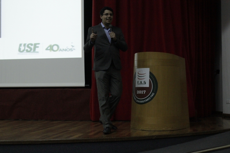 Antes da palestra, o Me. Ricardo Krupiniski, coordenador do Núcleo de Apoio ao Docente (NAD), falou de que forma as metodologias ativas estão sendo aplicadas pelos professores em sala de aula e o resultado desses trabalhos. O Vice-reitor, Sérgio De Angelis também acompanhou o encontro e a palestra. "A Semana nos proporciona abrir novas expectativas. Com convidados de outras instituições, é possível que conheçamos e saibamos o que está acontecendo lá fora, e têm muitas coisas. O Centro FAG está sempre inovando, e isso é muito importante, pois estamos trabalhando com as metodologias ativas e tecnologias em sala de aula, o que resulta em aulas mais dinâmicas e aprendizado efetivo", declara.