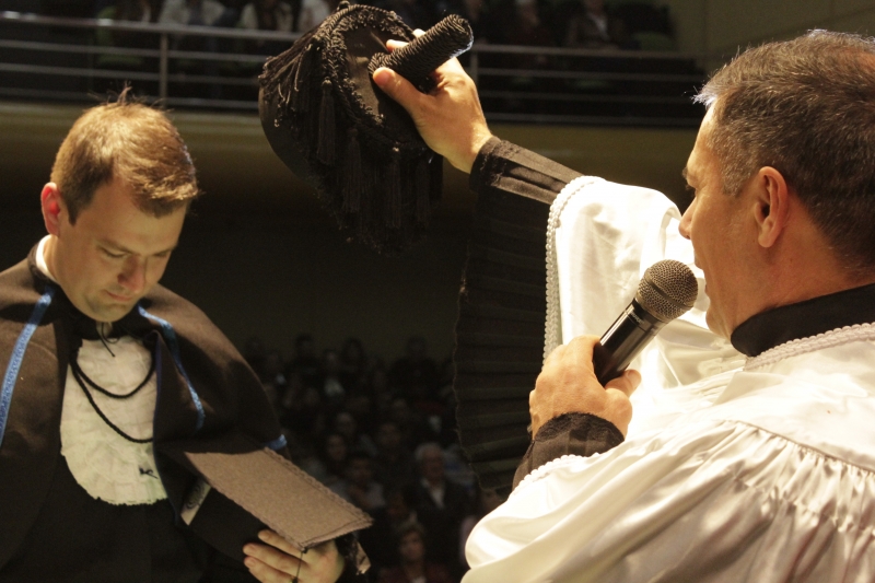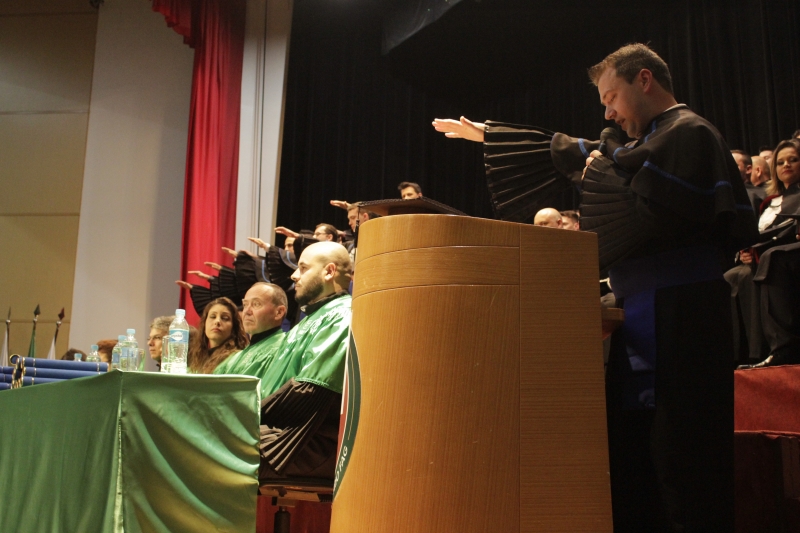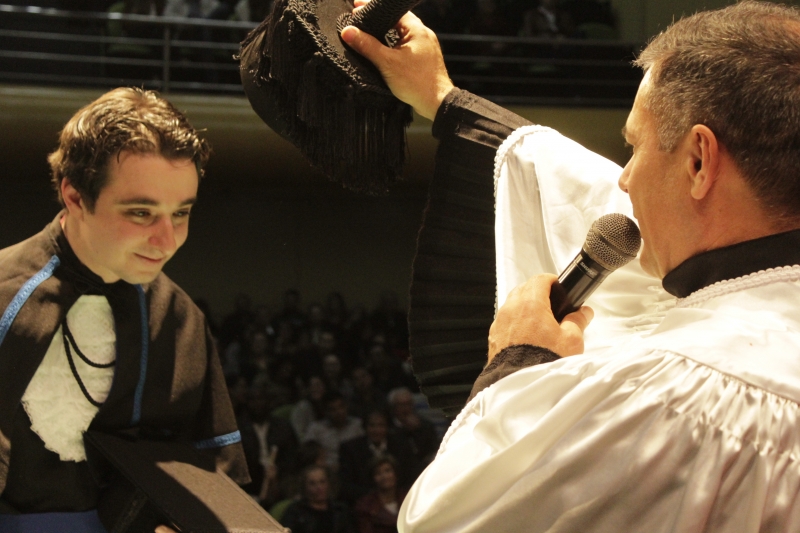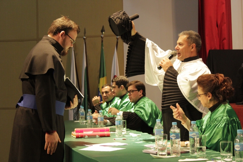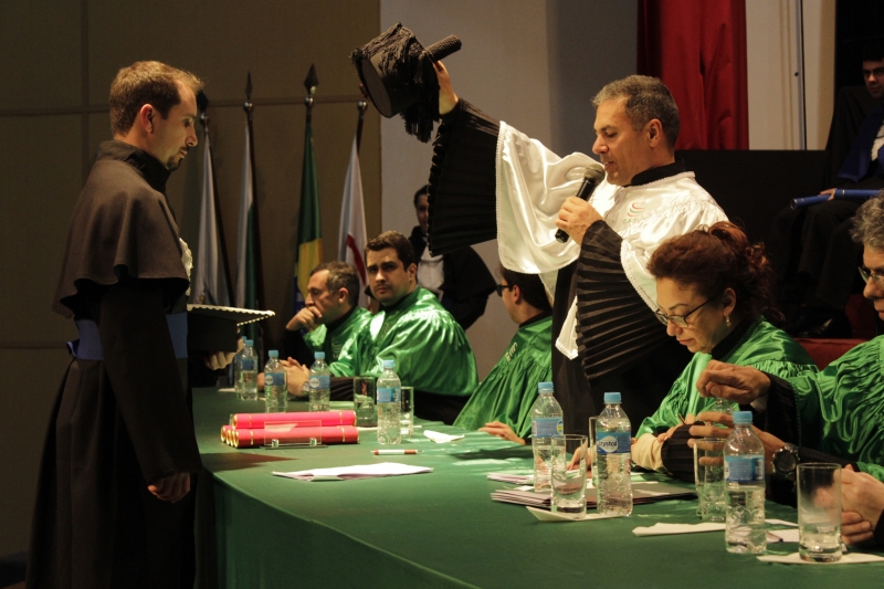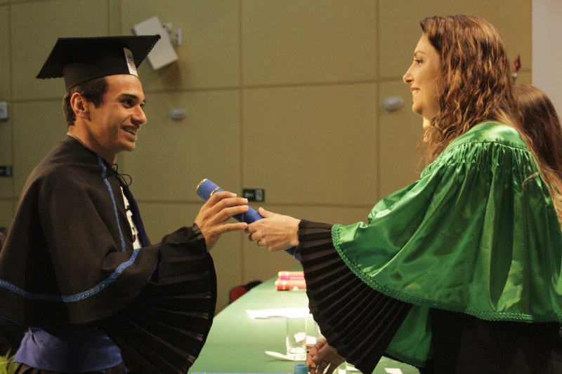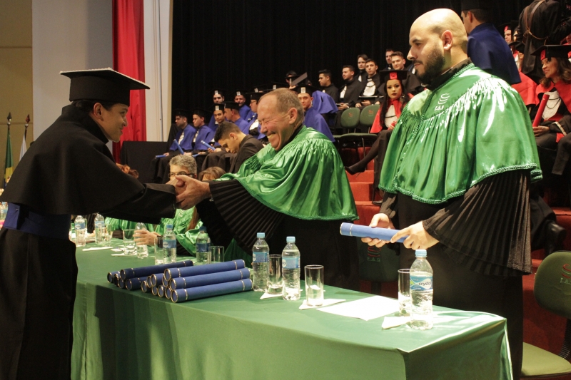 Os formandos, Jéferson Manenti Acarci do curso de Engenharia Mecânica, Juliano Cavinato Zanelli de Engenharia Elétrica e Controle de Automação e, Maikon Michel de Medeiros do curso de Direito, receberam as láureas acadêmicas, pois obtiveram as maiores médias das turmas.