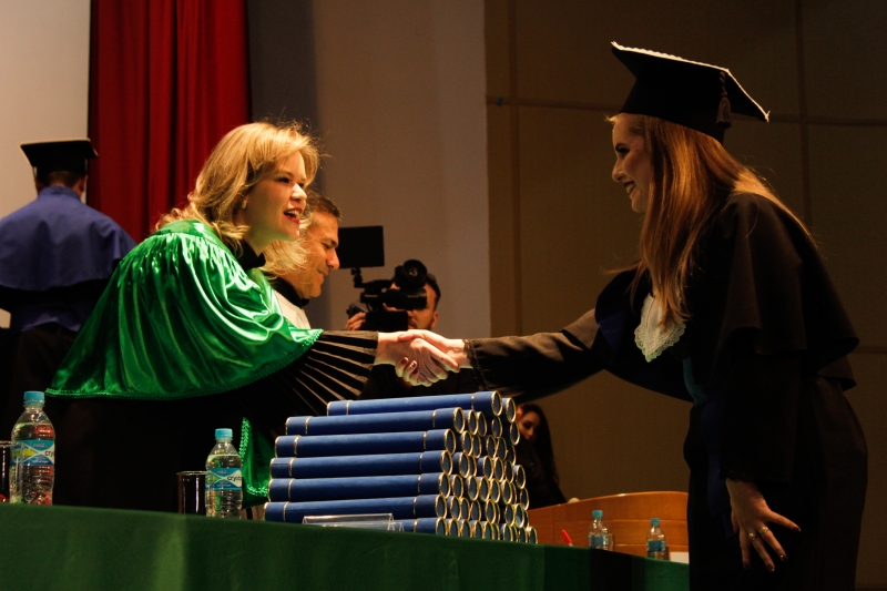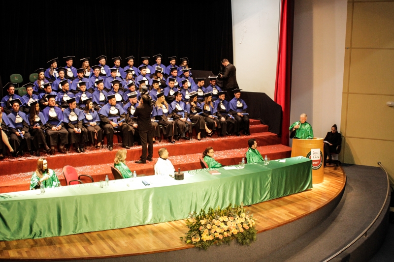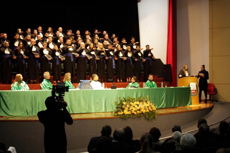 A formanda Elen Carolina Pieniak procedeu ao juramento, e Bruna Penteado representou a turma como oradora. Em seu discurso, relatou os cinco anos passados junto à turma. "Esse foi o momento mais esperado. Quando ingressamos, éramos como crianças descobrindo o mundo. Hoje é dia de agradecer a todos que nos acompanharam. Foi pelo dia de hoje que tudo valeu a pena, estamos celebrando nossa vitória", vibrou.