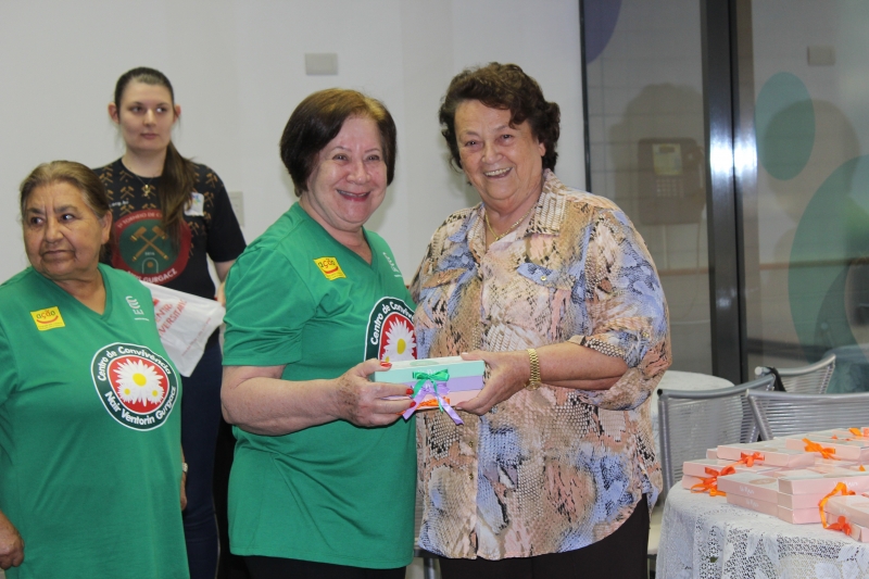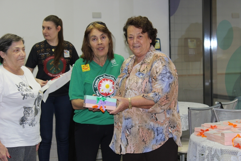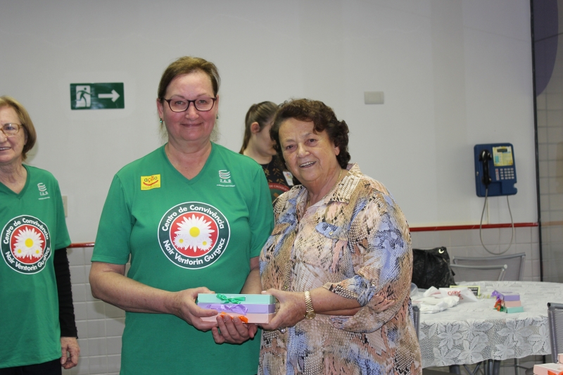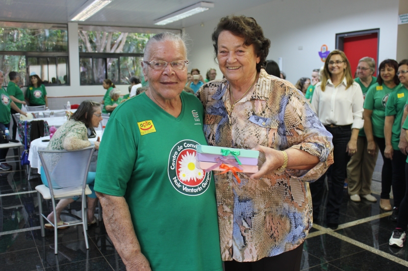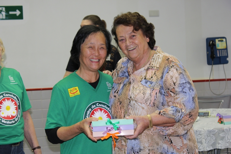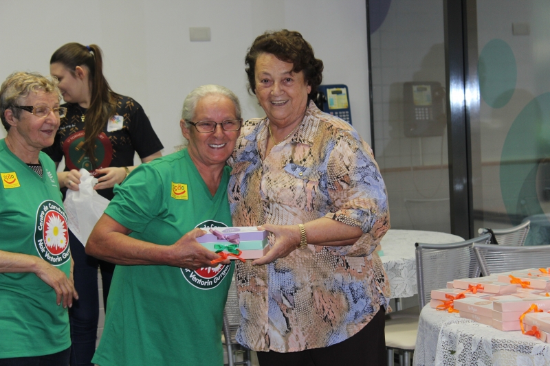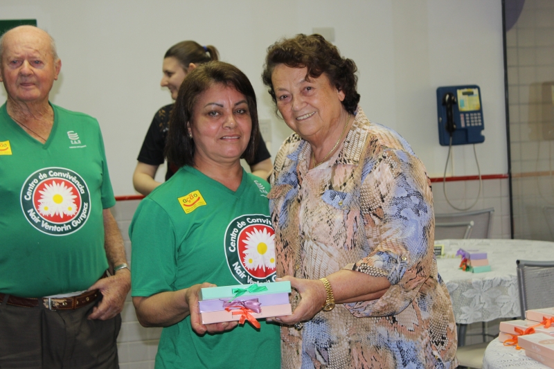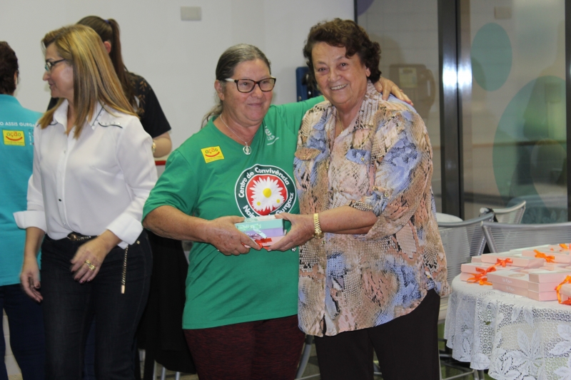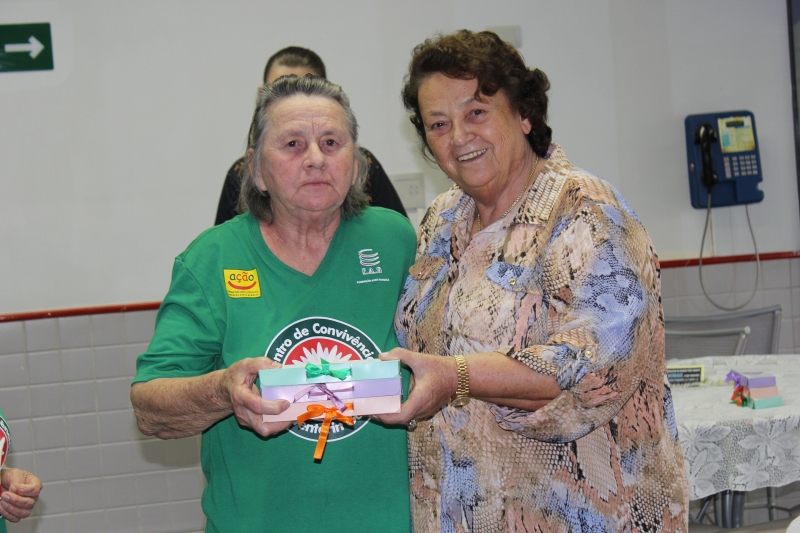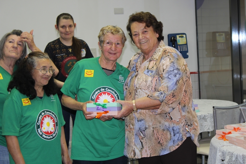 Os idosos do Centro de Convivência entregaram ontem (09) os sabonetes artesanais produzidos em oficinas à Presidente da Fundação Assis Gurgacz, Nair Ventorin Gurgacz. Os produtos foram batizados de "Vó Nair", em homenagem à mantenedora do projeto. A finalidade foi promover o desenvolvimento humano e a sua emancipação ativa na sociedade, contribuindo na formação e no processo de envelhecimento autônomo e na geração de renda para os idosos, do Programa de Convivência e Fortalecimento de Vínculos, com recursos oriundos do Fundo Municipal do Idoso - FMI.