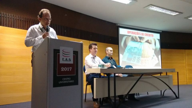 No último sábado (12), foi realizado, no auditório da FAG Toledo, o Projeto Integralizador dos colegiados de Administração e Ciências Contábeis, sob a responsabilidade dos professores Luis Fernando Enciso e Marcos Rodrigo Schenato, que fizeram uma discussão com o tema: As Operações de Crédito do Sistema Financeiro Nacional.