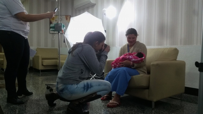 Os acadêmicos fizeram a produção de fotos das mamães ainda no hospital com seus filhos