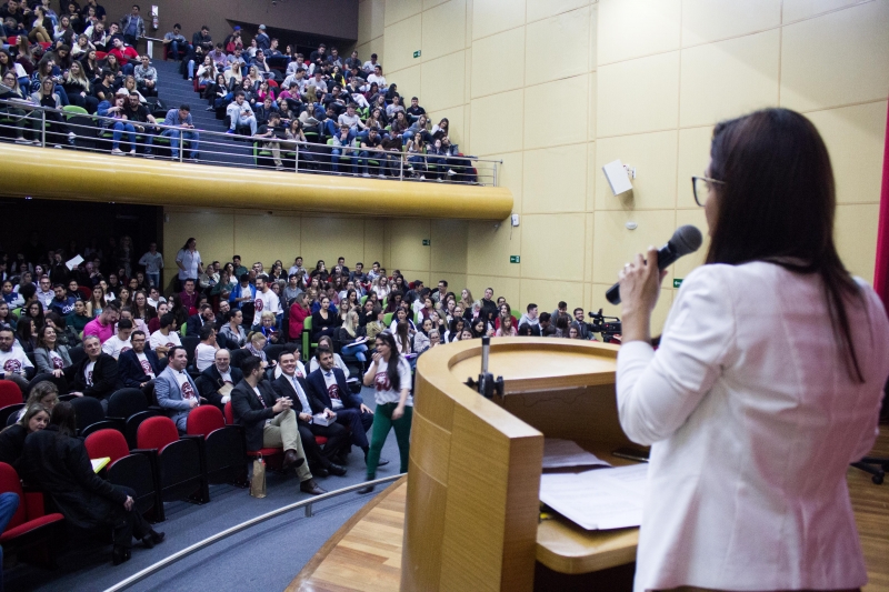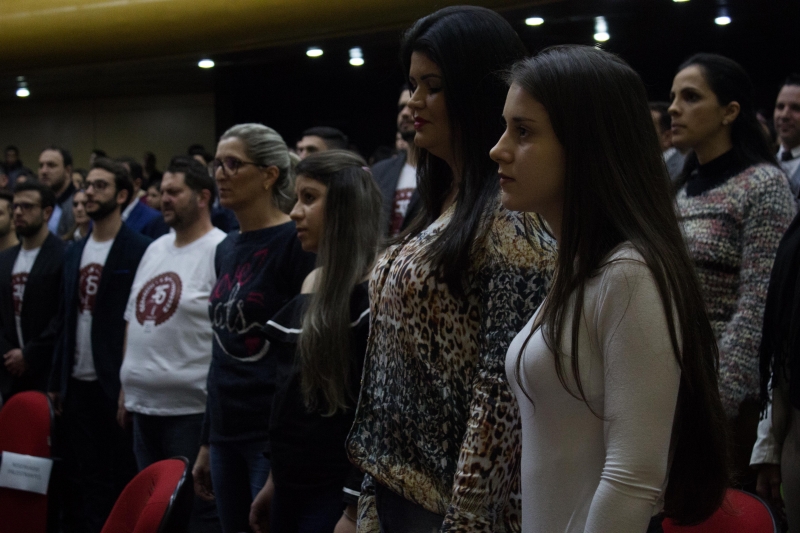A coordenadora do curso, Viviana Bianconi, assumiu o cerimonial e relatou a consideração que tem pela instituição e pelo curso, afinal, são 13 anos dedicados à graduação, dos quais oito são na coordenação. "Debutamos e demonstramos em conquistas e números nossa maturidade. Somos o melhor curso de Direito da região, de acordo com o MEC e obtivemos o maior porcentual de aprovações no 22º Exame da OAB em Cascavel, um orgulho imenso para todos nós", declara.