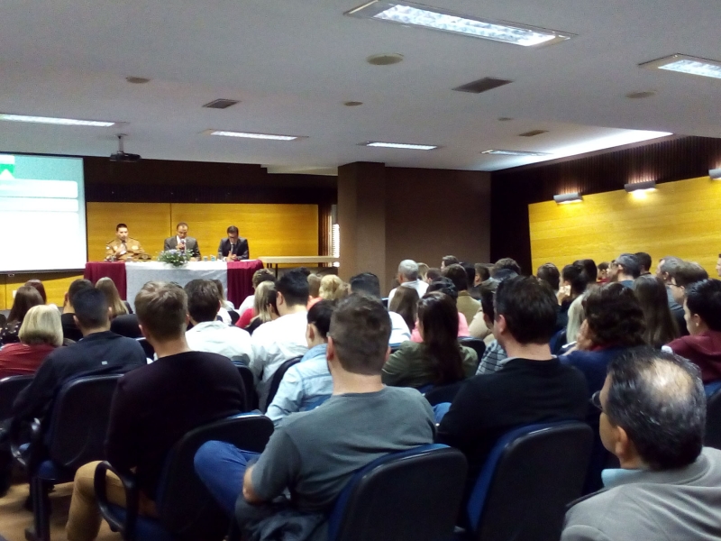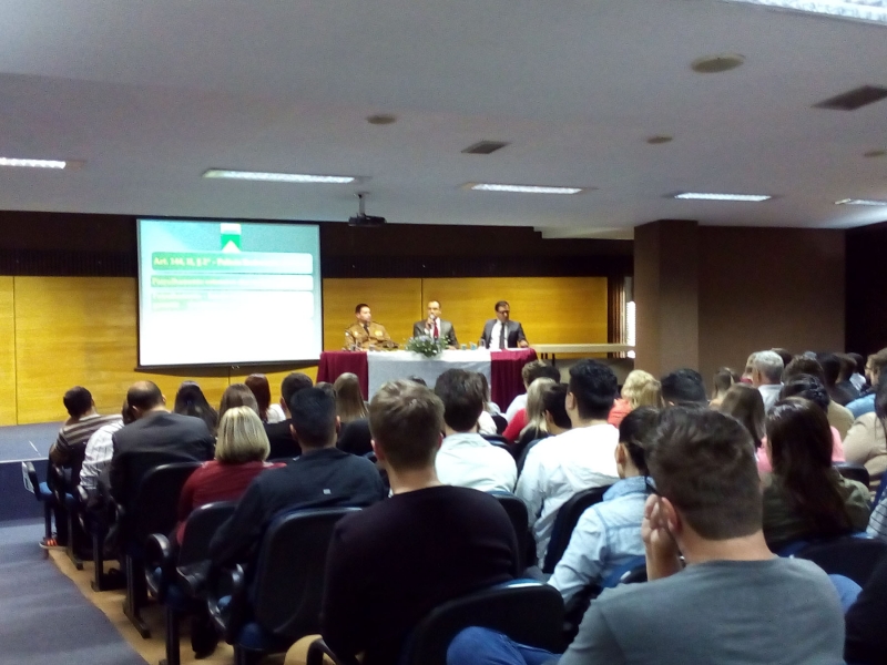 No segundo dia da XII Semana Jurídica do centro FAG Toledo, que aconteceu na terça-feira (15), os participantes acompanharam a fala do Tenente Coronel Assunção, sobre o ciclo completo de Polícia, e Figueiredo Monteiro Neto que falou sobre Audiência de Custódia. A mediação do dia ficou por parte do Dr. Valmir De Souza.
