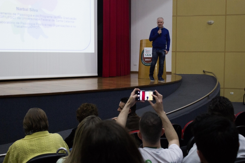 A professora, Lays Raycik, foi a responsável em contatar o professor. "Fiz meu mestrado na UFSC, na linha do professor Narbal, então desde lá a gente vem estudando e pesquisando sobre a Psicologia nas Organizações do Trabalho, e desde o ano passado a gente tem feito as pesquisas técnicas para a UFSC, e o professor Narbal nos recebeu durante essas visitas, aí esse ano surgiu o convite pra ele estar aqui com a gente na Semana da Psicologia", conta.