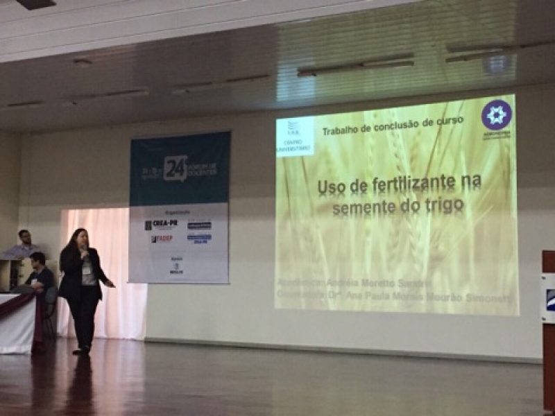 O Trabalho de Conclusão de Curso de Andreia foi intitulado "1º Uso de Fertilizantes na Semente de Trigo". O artigo foi apresentado no fim do ano passado e teve a orientação da coordenadora, Ana Paula Morais Mourão Simonetti.