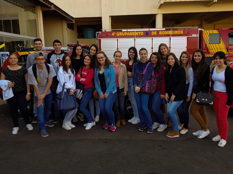 Os acadêmicos participaram de palestra sobre o atendimento inicial da vítima e os primeiros socorros, realizada na FAG pelo bombeiro Franciney Rodrigues e também foram recebidos pelo 4° Batalhão do Corpo de Bombeiros de Cascavel para uma visita em suas instalações, conhecendo toda a rotina e procedimentos utilizados pela Corporação.