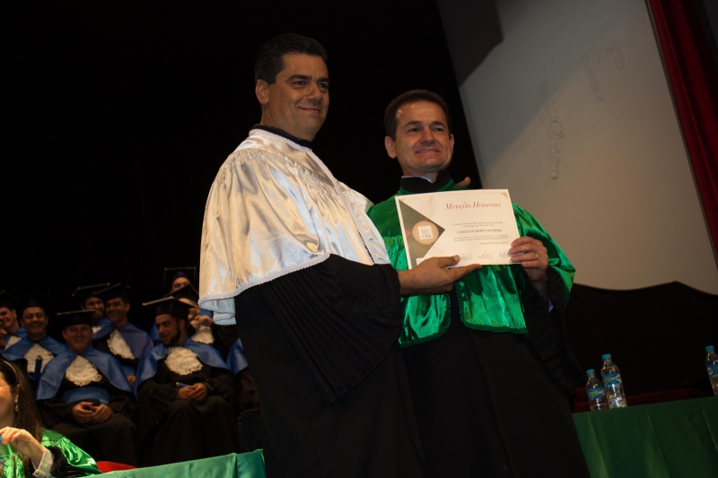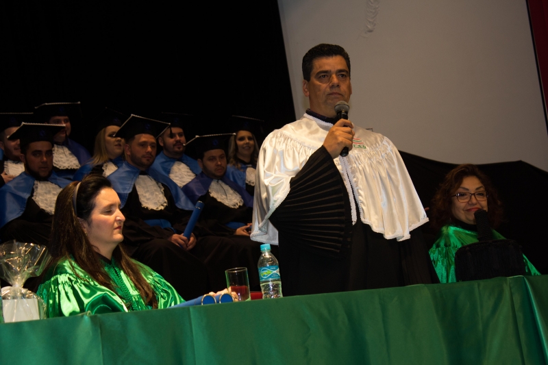 O paraninfo da turma, professor Carlos Roberto Moreira, parabenizou a coordenação pelo trabalho desenvolvido e também aos acadêmicos pela conquista. "Nós estamos entre os melhores do país. O talento, a força de vontade e a persistência trouxeram vocês até aqui e esse é apenas um passo para novas conquistas. O melhor está por vir. Agora, mais maduros e seguros, vocês são capazes de fazer o que quiserem", falou no discurso.