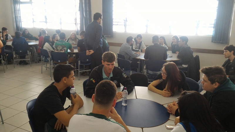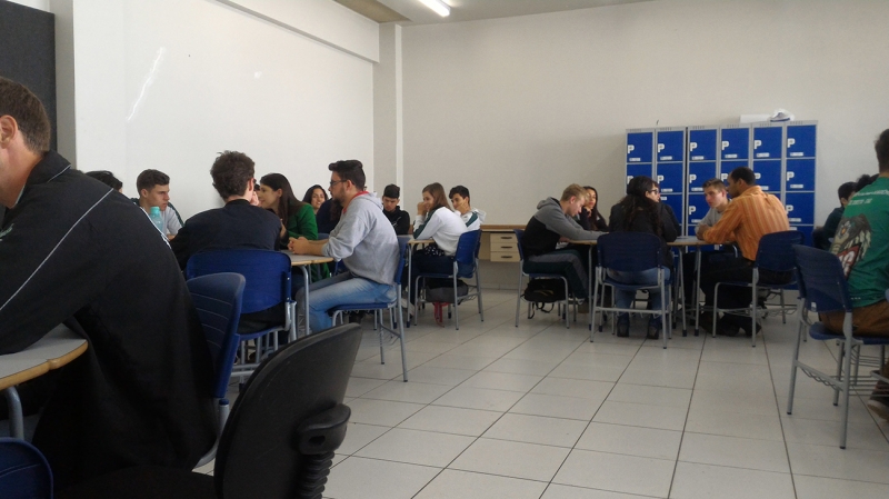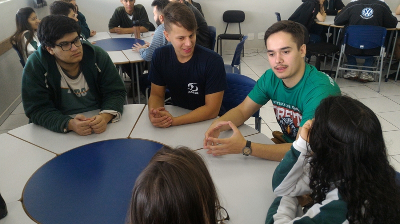 ?Essa foi uma das dinâmicas de exposição de cursos mais interessantes que já participei. A atividade realizada desta vez, de sentar perto e dos alunos, me apresentando como acadêmico da instituição, fez com que a mensagem ficasse mais próxima do real na visão deles?, conta um dos representantes da FAG e aluno do curso de Publicidade e Propaganda, Daniel Felipe.