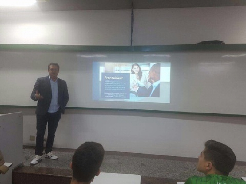 O assunto tratado em aula foi uma abordagem do administrador como agente de negócios internacionais, o mercado internacional e oportunidades de investimentos. Alunos do 4º, 6º e 8º períodos participaram.
