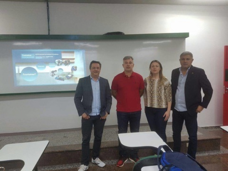 O curso de Administração do Centro Universitário FAG recebeu para uma aula especial, com a supervisão do professor Eudiman. A fala foi feita pelo Advogado e Consultor Internacional, Heroldo Secco Jr., e Marcelo José Cardozo Dias, coordenador da Câmara de Negócios Internacionais do Conselho Regional de Administração do Paraná.