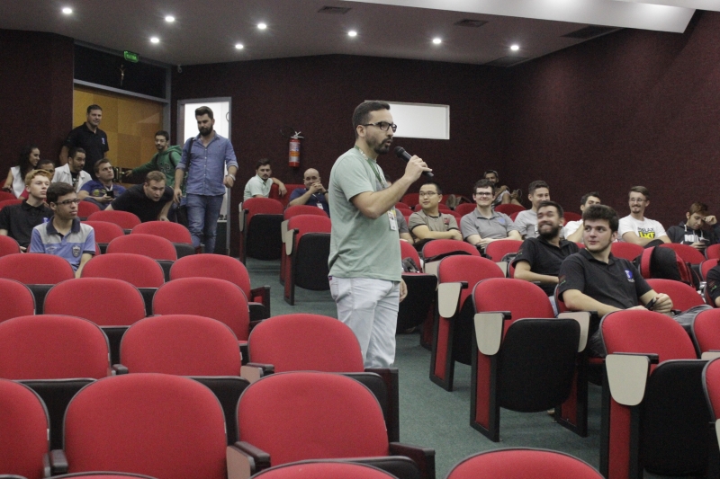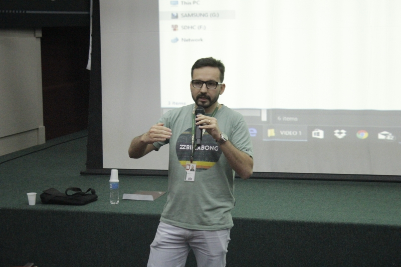 A segunda palestra da noite ficou por conta do professor Evandro Reis que debateu com os alunos sobre "Gamification: Games e 3D". Evandro. Ele explica de que forma trouxe o tema para os alunos. "Antes do Game, vem o 3 D, então, primeiro dei uma pincelada no 3D e depois mostrei de que forma agregar o 3D no game. Iniciativas como essa só agregam na aprendizagem, são assuntos de fora que não estão na grade curricular", esclarece.