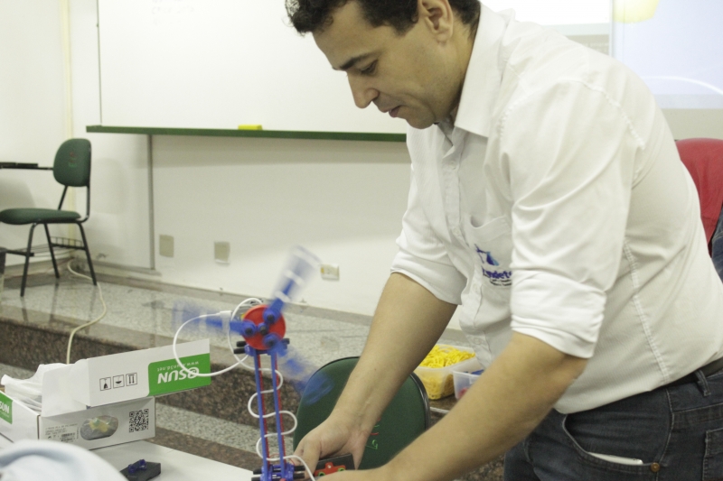 Na quarta (06), para encerrar, Jocemar do Nascimento, Supervisor de Equipe da Fundetec, foi o convidado para aplicar a oficina sobre "Robótica com Arduíno". "Num primeiro momento eu apresentei as placas como modelo para introdução, em seguida eles montaram um ventilador e, por fim, automatizaram. Cada um criou um modelo diferente daquele que eu trouxe, esse é o legal da oficina: ver a criatividade dos alunos", descreve.