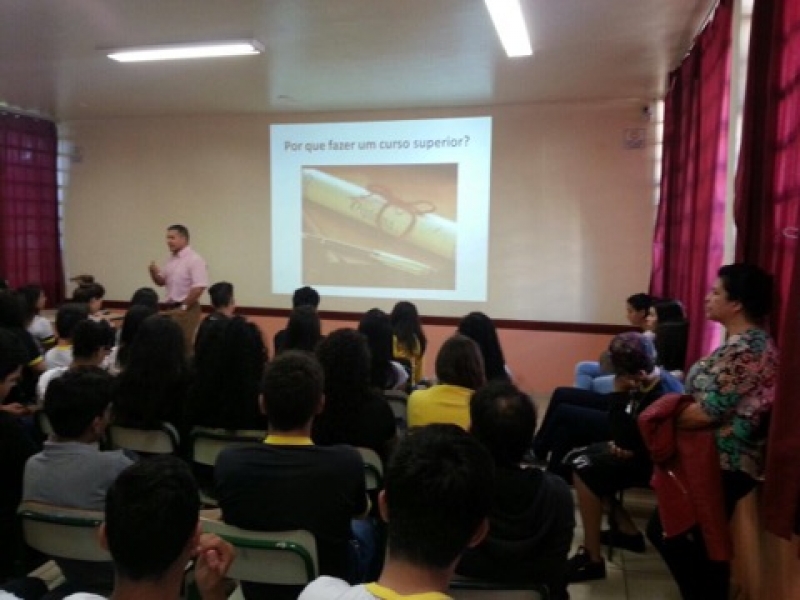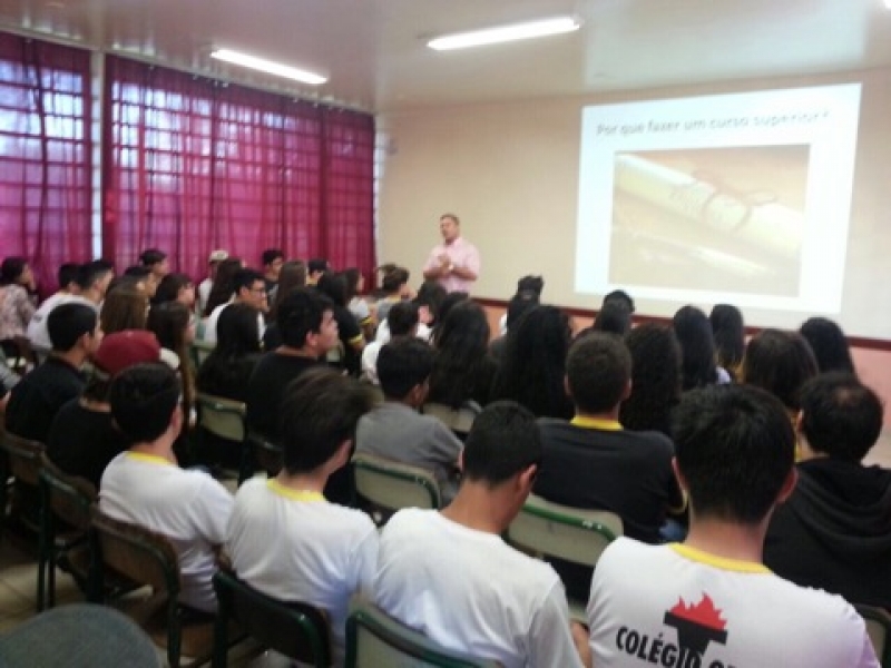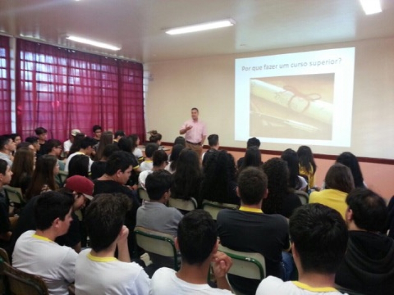 O Vice-Reitor do Centro Universitário FAG, Sérgio De Angelis, continua a série de visitas às instituições de ensino. Um dos locais que receberam o professor foi o Colégio Estadual José Angelo Baggio Orso, no Bairro Guarujá, em Cascavel. Alunos do 2º e 3º anos do Ensino Médio ouviram dicas sobre a importância da continuidade dos estudos e como se tornar um profissional realizado.