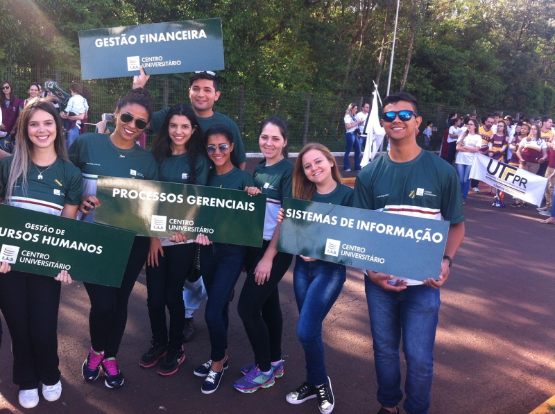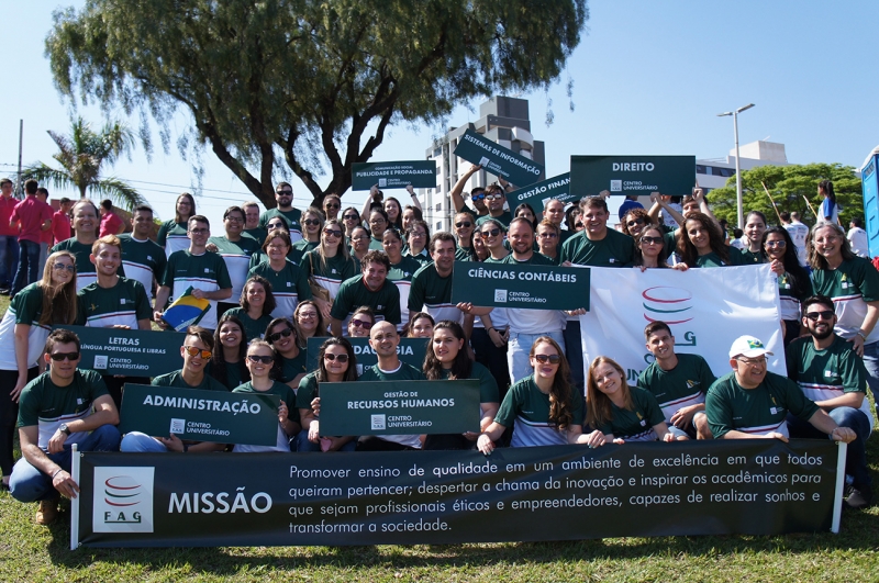 Os representantes da FAG desfilaram uniformizados, segurando placas com os nomes dos cursos oferecidos no campus de Toledo e uma faixa com a frase que representa a missão da instituição.