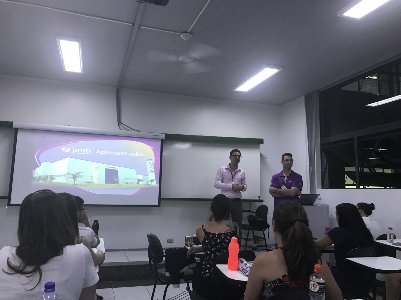 Na quarta-feira (13), os acadêmicos do curso de Farmácia do Centro Universitário FAG assistiram a uma apresentação da empresa Pratti Donaduzzi, maior fabricante de medicamentos genéricos do país*, que tem sede em Toledo. O gerente de laboratório de pesquisa e desenvolvimento analítico, Rodrigo Bressan, e o supervisor de recrutamento e seleção, Paulo Vicelli, apresentaram os laboratórios, além de também elencarem as oportunidades de trabalho para os alunos dos últimos anos do curso.