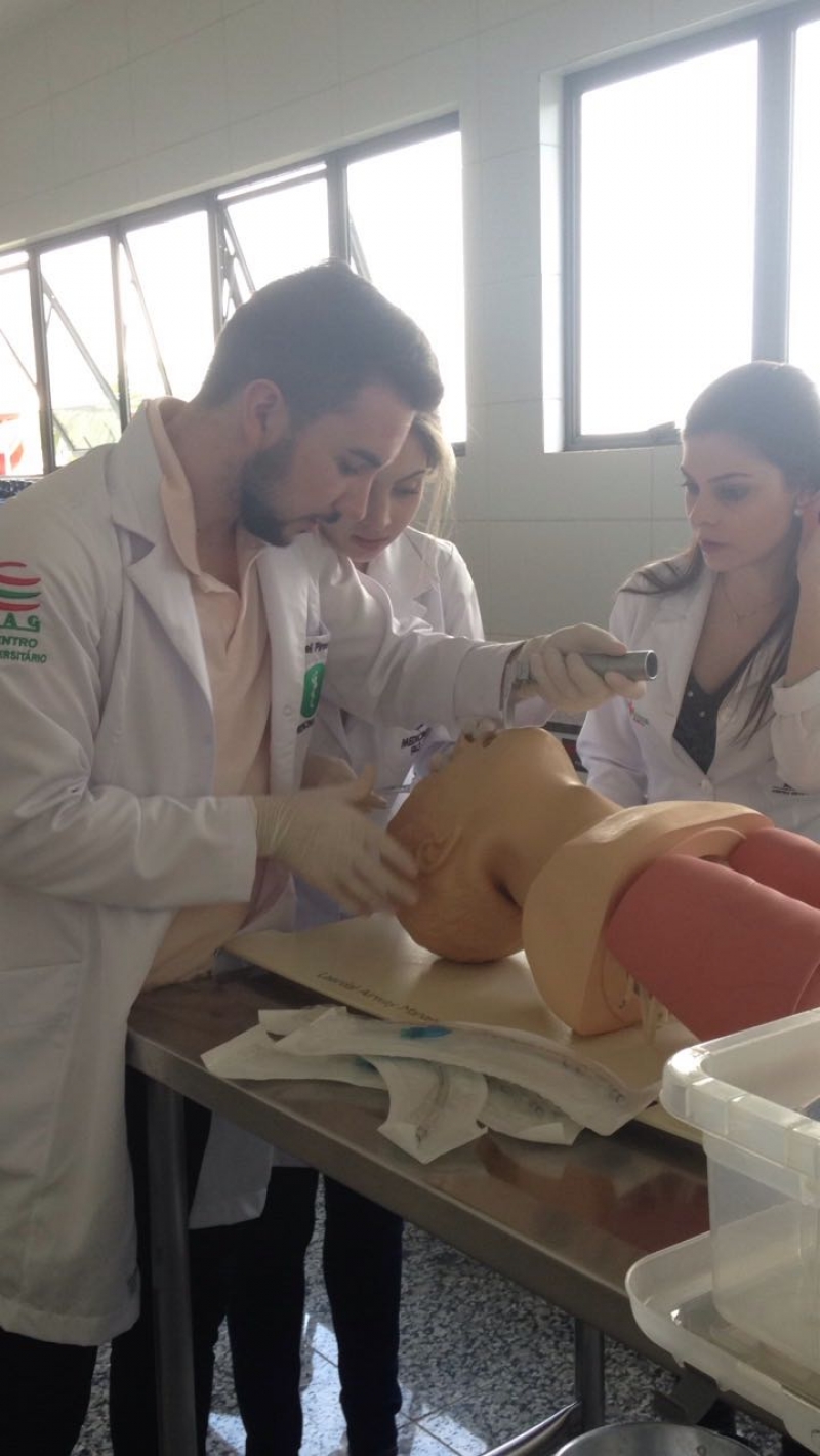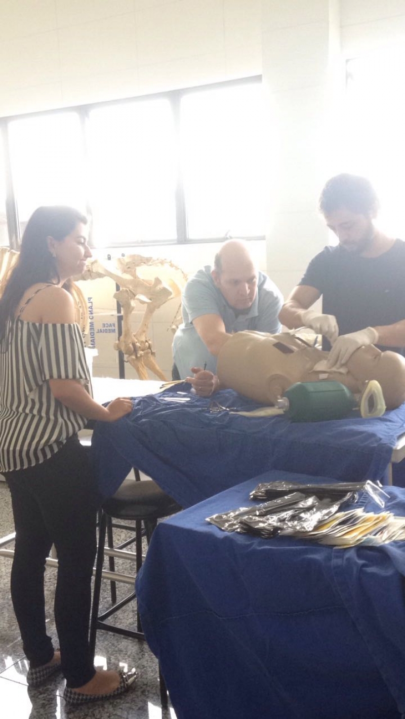 À tarde, o grupo participou de aulas práticas. "Trata-se de uma grande oportunidade para os acadêmicos se aprofundarem na área. Além das palestras realizadas por médicos especialistas, o curso ofereceu ainda aulas práticas sobre intubação orotraqueal de difícil manejo e sobre via aérea difícil e traqueostomia", explica a Presidente da CAMERA, Paula Rissi Nogari.