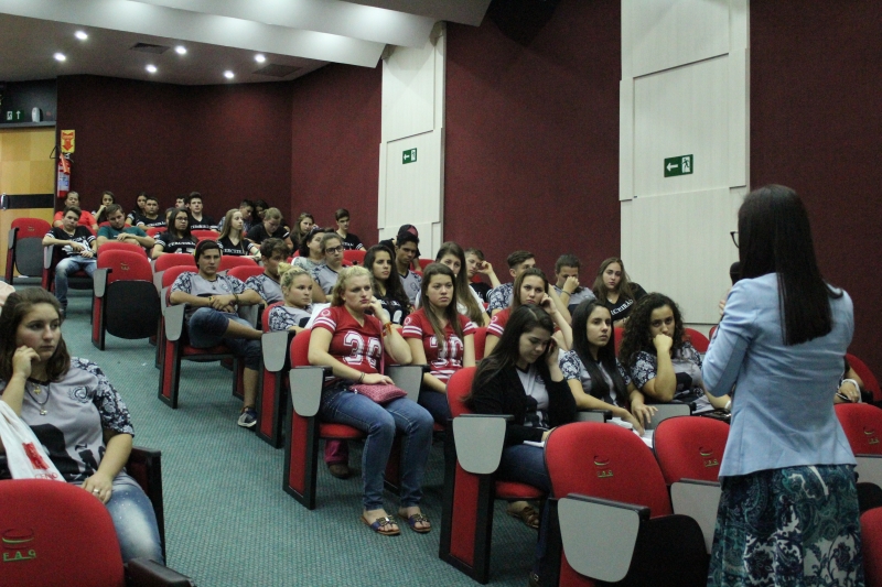 Além da programação para os alunos, que tiveram a oportunidade de aprender mais sobre as profissões que almejam, os professores tiveram um compromisso: assistiram à palestra "A relação Professor-Aluno e o Processo Ensino Aprendizagem: Reflexões sobre a relevância nas diferentes dimensões do processo ensino aprendizagem que se desenvolve em sala de aula", que foi ministrada pelo Pró-Reitor Acadêmico da FAG, Afonso Cavalheiro Neto.