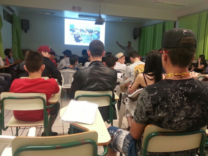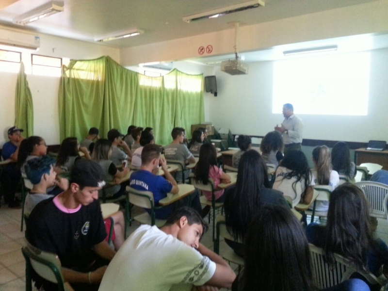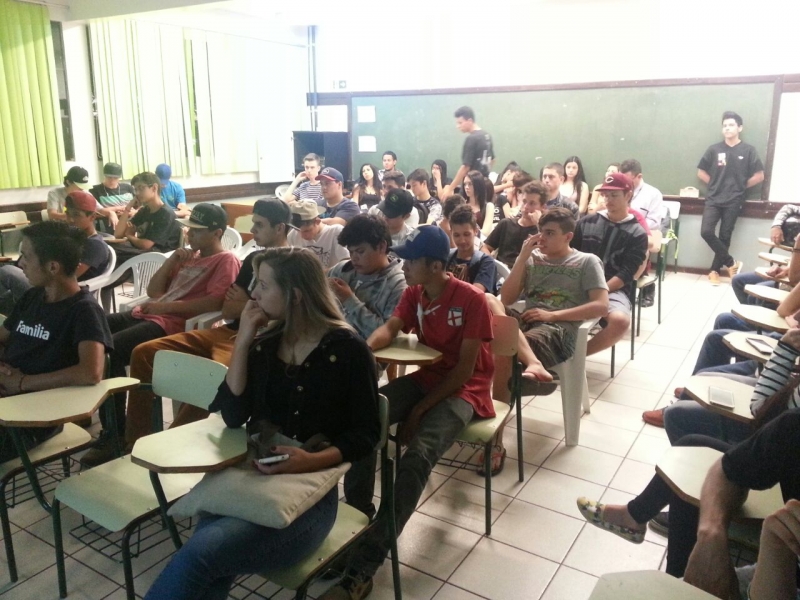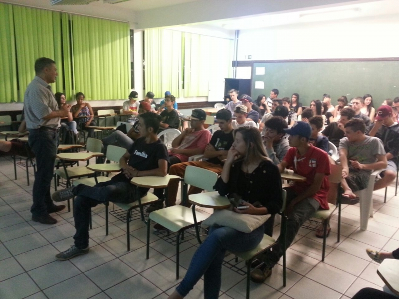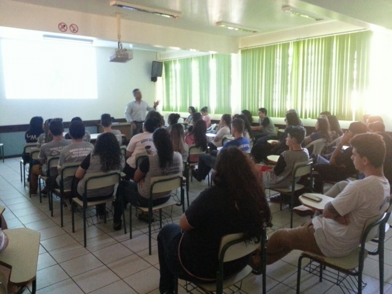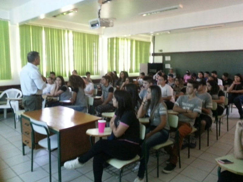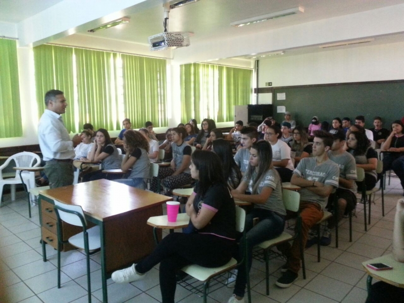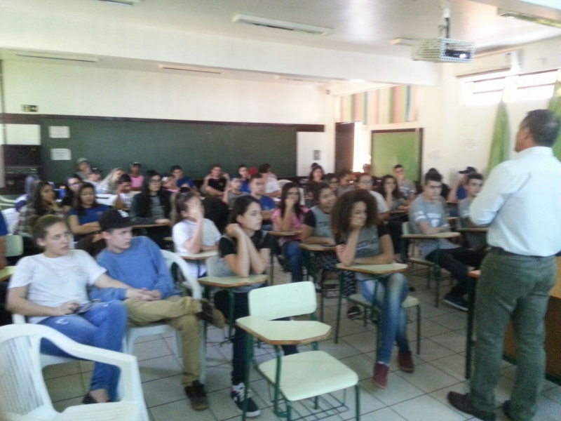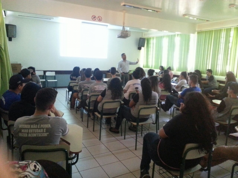 Alunos do 1º, 2º e 3º anos do Colégio Estadual Mário Quintana, no bairro Esmeralda, em Cascavel, receberam o Vice-Reitor do Centro Universitário FAG, Sérgio De Angelis. Sérgio falou sobre a importância da qualificação profissional e dar continuidade aos estudos.