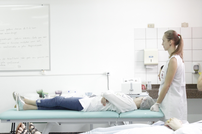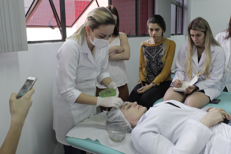 A aula teórica e a prática foram ministradas pela fisioterapeuta Suellen Ferreira no laboratório de Estética do Centro FAG
