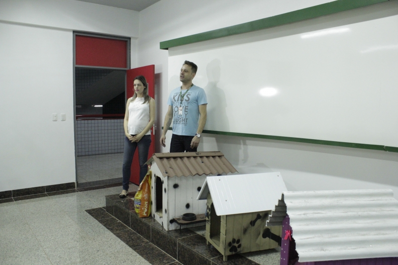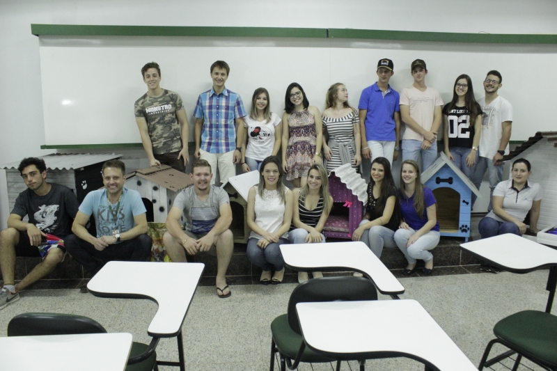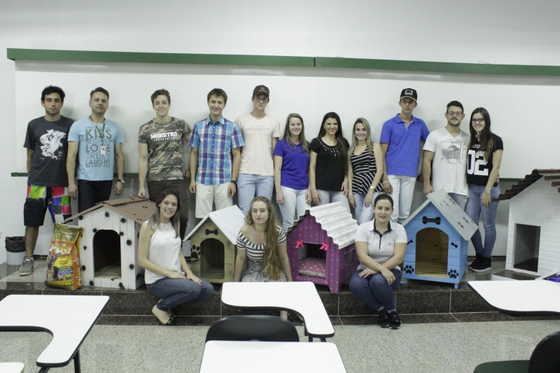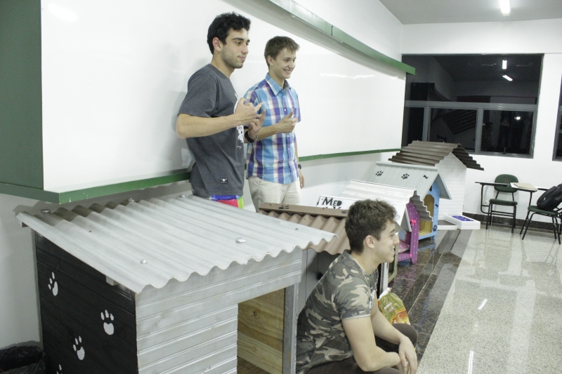 Acadêmicos do 1º período do curso de Medicina Veterinária participaram, no segundo bimestre, de um projeto social orientado pelo professor Cesar Drehmer. Ao todo, seis casinhas foram fabricadas e entregues à ONG Sou Amigo. "A minha disciplina trabalha questões de prevenções de espécies e de bem-estar do animal, então eu propus aos alunos para criarem essas casinhas pensando então no bem-estar do animal. O resultado foi bem bacana, dá pra ver pela criatividade que eles tiveram e foi bastante proveitoso", explica o professor.