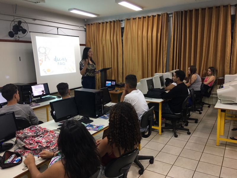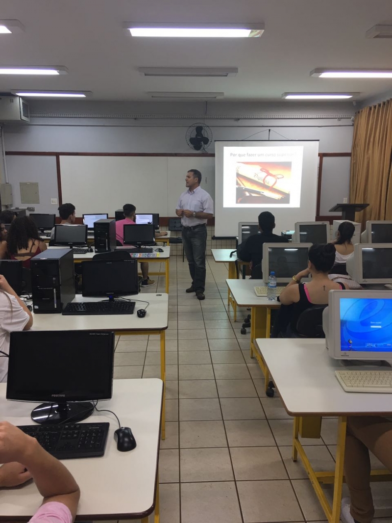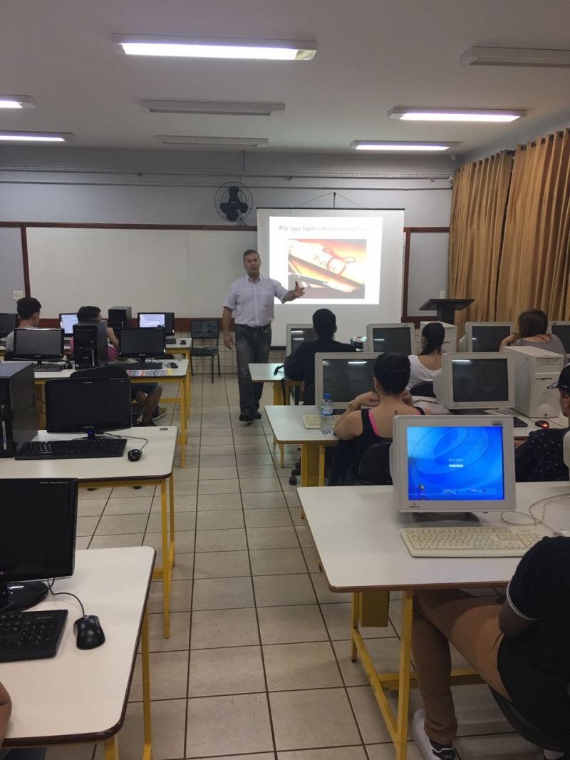 O Vice-Reitor do Centro Universitário FAG, Sérgio De Angelis, e Coordenadora dos cursos de Estética e Cosmética da Faculdade Dom Bosco e de Fisioterapia da FAG, Leda Paes Walcker foram recebidos no Colégio Estadual Santos Dumont, em Cascavel. Alunos do Ensino Médio ouviram dicas sobre a importância da continuidade dos estudos e como se tornar um profissional realizado.