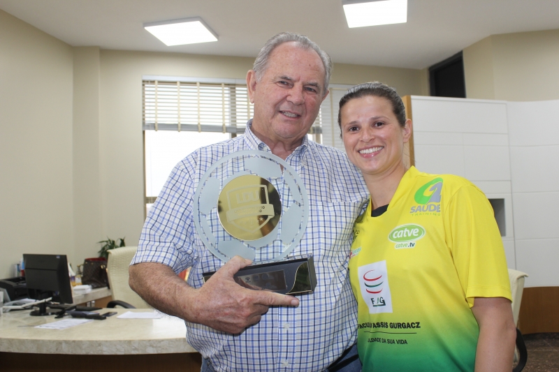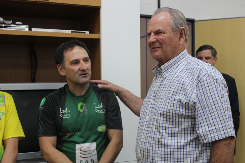 O time, liderado pelo técnico e professor do Centro Universitário FAG, Neudi Zenatti, entregou o troféu da conquista para o Reitor da FAG, Assis Gurgacz, ao Vice-reitor, Sérgio De Angelis, à Pró-reitora Administrativa, Jaqueline Gurgacz Ferreira, e ao Pró-reitor Acadêmico, Afonso Cavalheiro Neto. "Para nós é sempre um orgulho ver a FAG se destacando nos esportes. Acreditei nesse projeto lá em 2008, quando o Neudi me procurou e apresentou o planejamento e hoje não me arrependo nenhum pouco. Temos muito o que comemorar", parabeniza o Reitor.