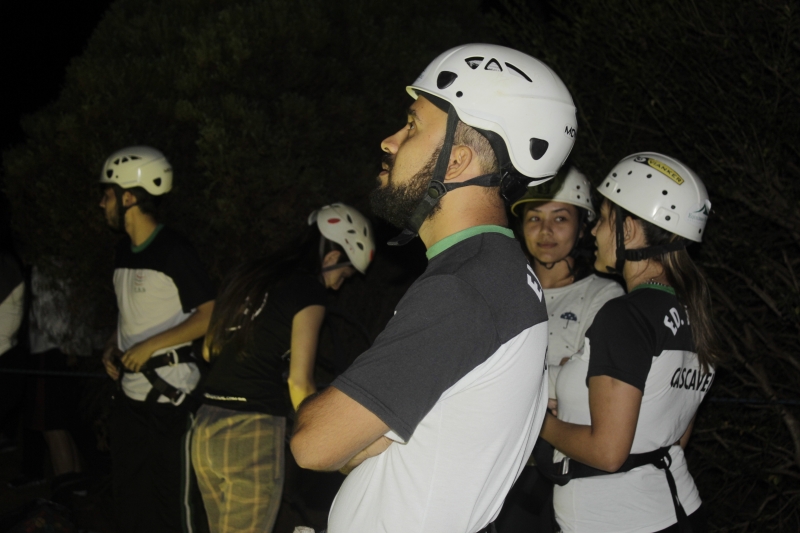 Durante a concentração para o início do exercício, o nervosismo consumia a acadêmica Caroline Alberton. "Está sendo uma mistura de nervosismo, ansiedade e de medo. É a primeira vez que pratico uma escalada. Estamos vivenciando uma teoria, já participamos de outras atividades práticas assim, e é sempre uma novidade pra gente", descreve.