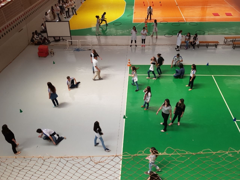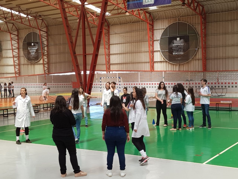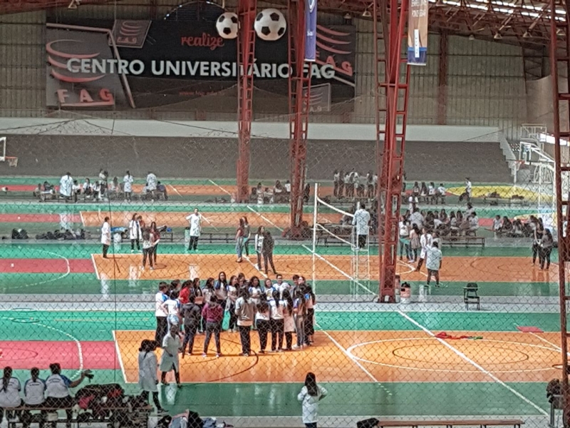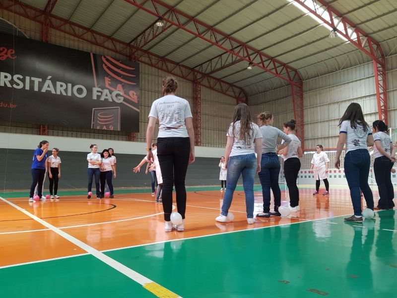 À tarde, os alunos participaram de oficinas práticas no Ginásio de Esportes. Eles se alternaram entre as atividades realizadas nas diferentes quadras, enquanto os professores assistiram à fala da professora Danieli Moreira. "É a primeira vez que venho à FAG, é uma estrutura perfeita. Nós tivemos bastante atividades que destacaram a importância do professor tem confiança no que está fazendo. Gostei muito", conta Kelly Milene Faccin, aluna do curso de formação de docentes do Colégio Estadual Presidente Roosevelt. "Acho muito válido o evento, pois traz muito conhecimento para a formação profissional dos alunos e também para a vida pessoal, principalmente, por conta da variedade de atividades e como elas são trabalhadas aqui", complementa o professor do Colégio Estadual Leonardo Da Vinci, de Dois Vizinhos, Jeferson Thiago da Silva Vieira.