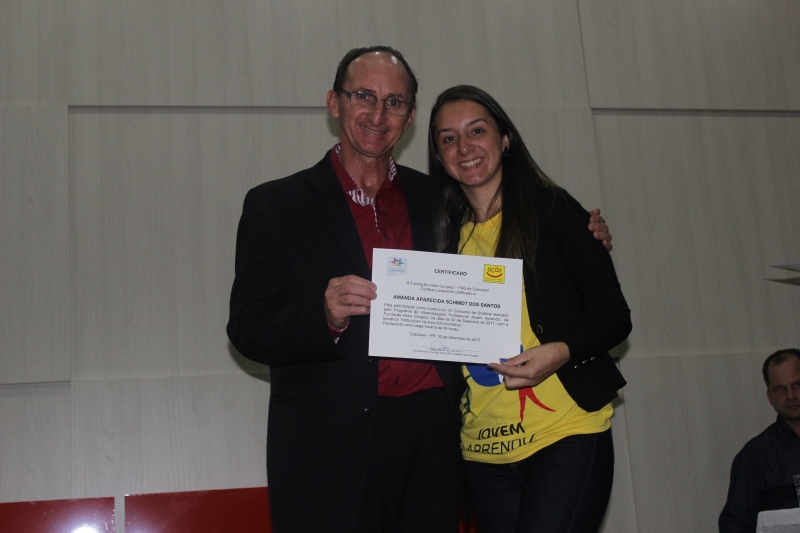 Quem se saiu melhor foi a aluna Amanda Aparecida Schmidt, aprendiz na empresa ASGEL. "Começamos a nos preparar há um mês. Eu tive o auxílio de alguns professores de português. Acredito que o ensaio foi fundamental. A sensação de vencer é muito boa", conta ela, que foi unanimidade não só entre os jurados, mas também entre os demais colegas. "É um sentimento de felicidade absoluta. A gente sempre busca que eles sigam por um bom caminho e esse é um reconhecimento que o apoio dos pais vale a pena. É uma felicidade sem tamanho", comemora Lígia Maria Schmidt, mãe da vencedora, que não escondeu a alegria em ver a filha ser campeã.