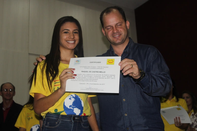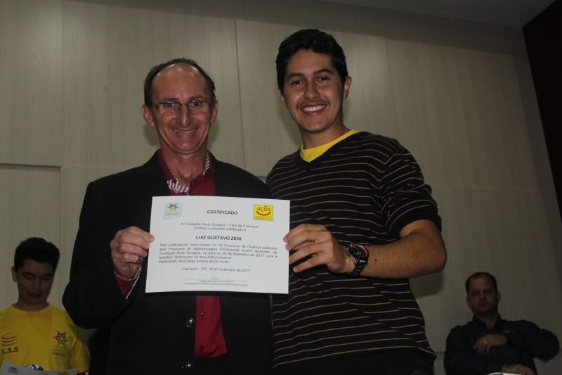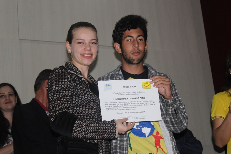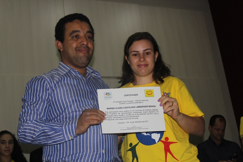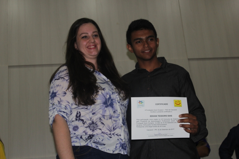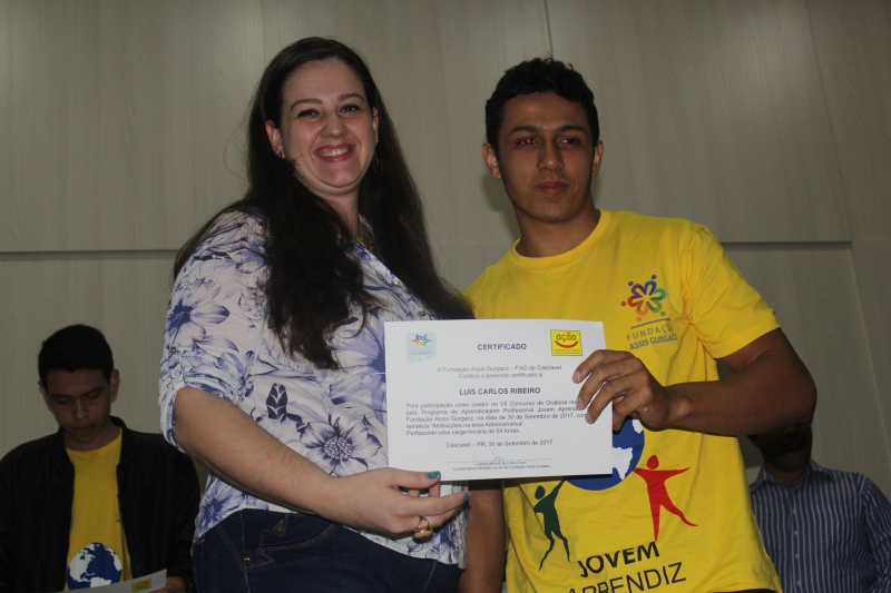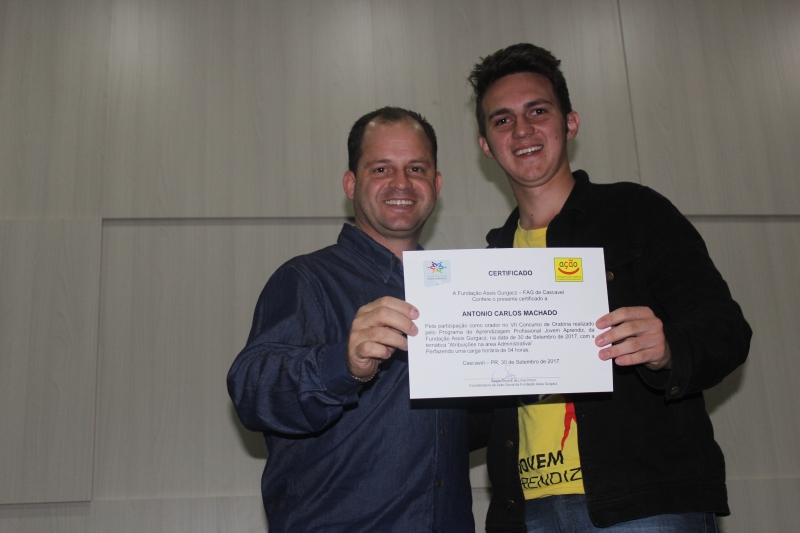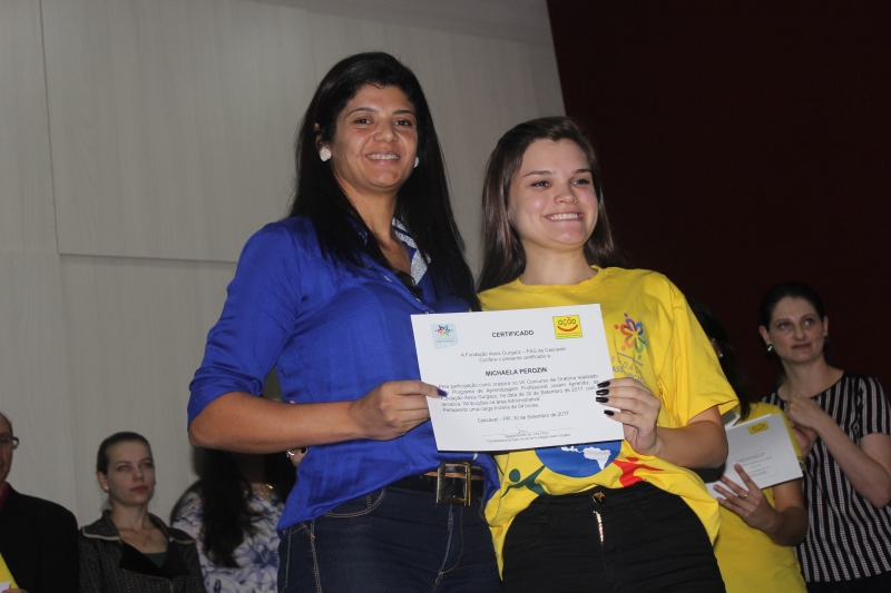 A Fundação Assis Gurgacz - FAG através, do (PAJA) Programa de Aprendizagem Profissional Jovem Aprendiz promoveu no último sábado (30), o 7º Concurso de Oratória com o tema "Atribuições na Área Administrativa". O objetivo foi estimular a prática de falar em público, desenvolvendo habilidades da comunicação oral e escrita, a inteligência emocional, a capacidade de pensar, de estabelecer relações humanas, interagindo com suas atividades escolares e com o mundo do trabalho, preparando os jovens aprendizes para a permanência no mercado de trabalho.