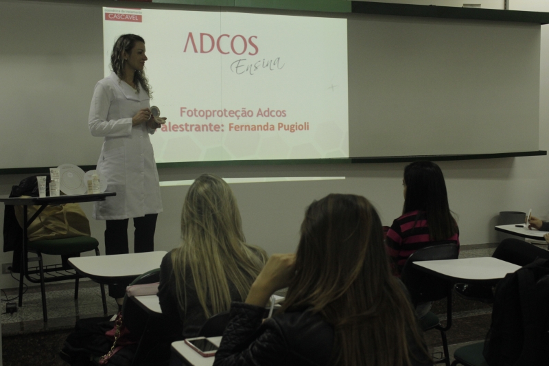 As estudantes tiveram a oportunidade de conhecer os produtos e seus benefícios. "Elas precisam ter conhecimento de como realizar uma fotoproteção consciente, principalmente após procedimentos estéticos, para que, com sabedoria, possam repassar às suas clientes. A ADCOS é uma empresa que sempre nos traz novidades e com produtos diferenciados", aponta a professora da disciplina, Suzana Bender.