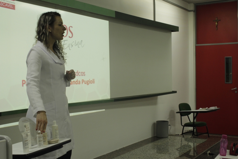 O curso de Estética e Cosmética da Faculdade Dom Bosco promoveu na última segunda-feira (02), uma palestra sobre "Proteção Solar, conceitos e produtos". A esteticista, Fernanda Puglioli, da ADCOS Cosméticos, falou às acadêmicas do 2º período sobre prevenção solar e tratamentos.